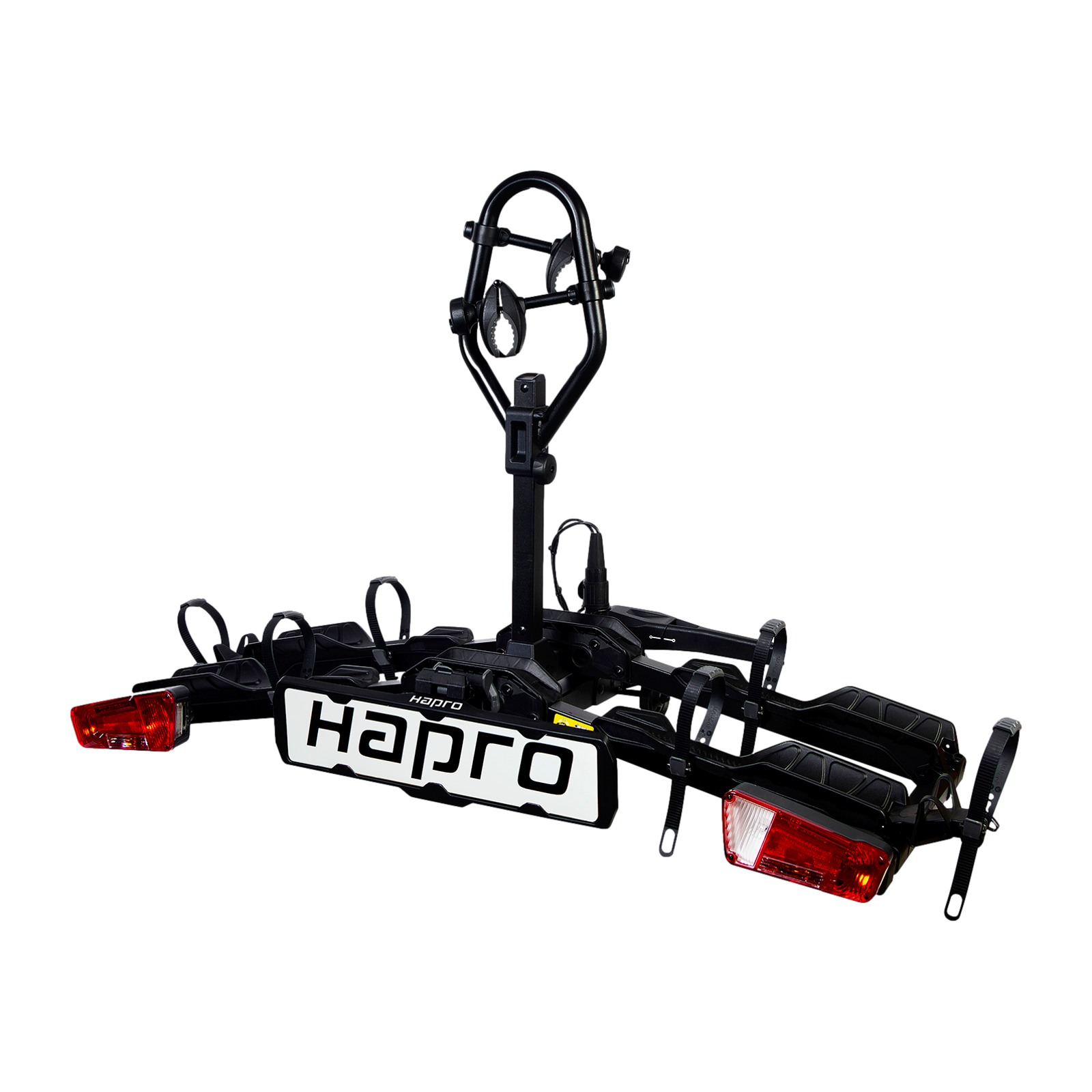 Der neue, innovative Fahrradträger Atlas Premium Xfold II aus dem Hause Hapro ist für 2 Fahrräder oder 2 E-Bikes und eine maximale Zuladung von 60 kg konzipiert. Durch die breiten Reifenhalter können Sie Reifen mit einer Breite bis 10 cm problemlos transportieren. Mithilfe von Spannbändern werden die Fahrräder am Reifen mit einer Ratschenbefestigung sicher fixiert. Zum Schutz der Felgen finden Sie an den Spannbändern spezielle Felgenschutzgummis. Da sich der Haltebügel zwischen den beiden Fahrrädern befindet, können Sie die Fahrräder mühelos befestigen. Am Haltebügel befinden sich zusätzlich abschließbare Rahmenhalter, mit dem die Fahrräder am Rahmen befestigt werden und vor Diebstahl geschützt sind. Die integrierten Schlösser des Hapro Atlas Premium Xfold II bieten verlässlichen Diebstahlschutz für Fahrräder und Träger. Bei Nichtbenutzung kann der Fahrradträger komplett zusammengeklappt werden und nimmt daher wenig Platz in Anspruch. Dank der am Träger befestigten Räder lässt sich der Hapro Atlas Premium Xfold II einfach von A nach B rollen. Lästiges Tragen zum Fahrzeug entfällt! Der Fahrradträger wird einfach auf die Anhängerkupplung gesetzt und mit dem neuen Befestigungssystem in nur wenigen Handgriffen befestigt. Durch den Abklappmechanismus lässt sich bei den meisten PKW ein Zugang zum Kofferraum ermöglichen, auch wenn die Fahrräder auf dem Fahrradträger montiert sind. Dieser Fahrradträger ist mit einem 13-poligen Stecker ausgestattet. Bitte beachten Sie, dass in einigen Ländern der EU für die Verwendung eines Fahrradträgers auch ein 13-poliger Elektrosatz vorgeschrieben ist (zum Beispiel Deutschland & Österreich). Gestalten Sie den Transport Ihres Bikes so einfach wie nie – mit dem Hapro Atlas Premium Xfold II Hapro investiert weiterhin in die Trägerprodukte und hat den Atlas Premium XFold II verbessert. Die neue Version läuft unter der Bezeichnung Atlas Premium XFold II 2.0 Ab März 2024 wird der Fahrradträger in einer verbesserten Version ausgeliefert. Neuheiten und Änderungen: – Überarbeitete Kupplungsanbindung mit verstärktem Gehäuse und verbesserter Klemmung – Neue Kabelführung – Halterung für 13-poligen Stecker – Neue Räder – Achszapfen von M6 auf M12 verstärkt – Zwei ‚Faltsicherungen‘ anstelle von vier – Verbesserte Fixierung der Fahrrad-Rahmenhalter