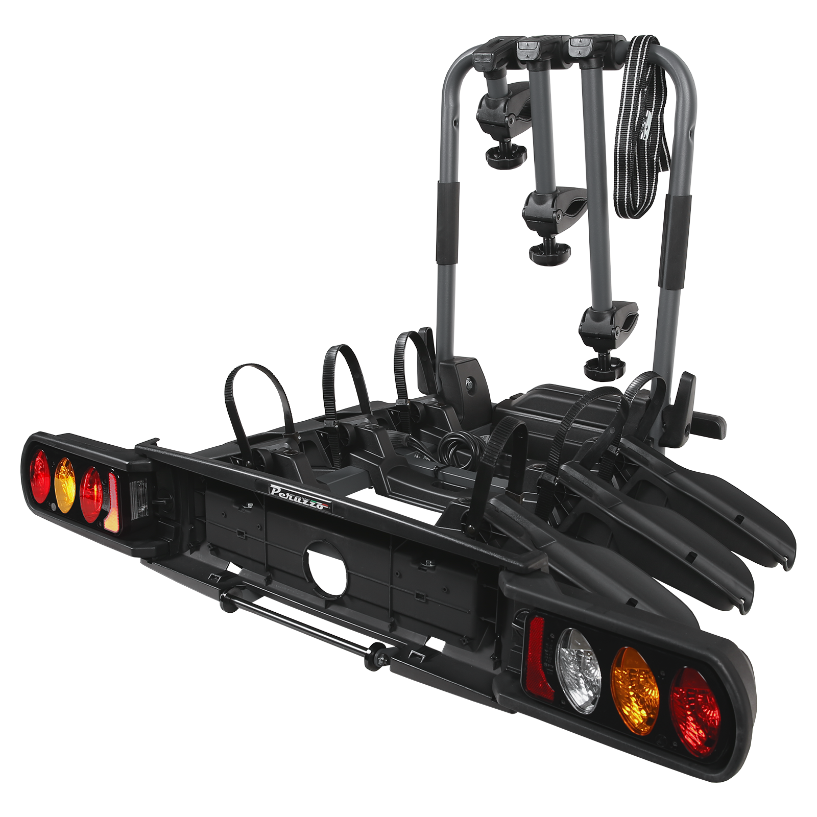 Die robuste Konstruktion des PERUZZO Pure Instinct ermöglicht einen sicheren und unkomplizierten Transport Ihrer Fahrräder. Jedes Fahrrad steht sicher und fest auf einer extrabreiten Halteschiene (für Reifenbreite bis max. 10 cm) und wird zusätzlich durch einen Haltearm am Rahmen (max. Rahmendurchmesser: 5 cm) fixiert. Der Pure Instinct kann über ein Fußpedal-Mechanismus abgeklappt werden – damit Sie auch bei montierten Fahrrädern an den Kofferraum gelangen. Der Fahrradträger ist durch ein Schloss diebstahlgeschützt. Unter „passendes Zubehör“ finden Sie eine zusätzliche Abschließfunktion für die Haltearme. Durch seinen Faltmechanismus ist der Träger einfach zusammengeklappt und kann platzsparend gelagert werden. Dieser Fahrradträger ist mit einem 13-poligen Stecker ausgestattet. Bitte beachten Sie, dass in einigen Ländern der EU für die Verwendung eines Fahrradträgers auch ein 13-poliger Elektrosatz vorgeschrieben ist (zum Beispiel Deutschland & Österreich). Der Kennzeichenhalter entspricht der Europäischen Norm (520 mm x 110 mm).