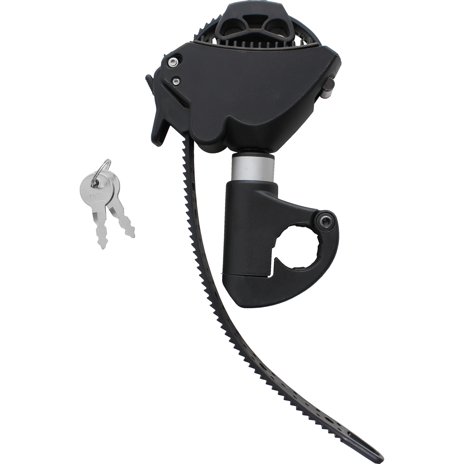 Abnehmbarer Strap-Rahmenhalter Der abnehmbare Strap-Rahmenhalter ist die ideale Lösung für die sichere Befestigung Ihrer Fahrräder auf dem Träger. Entwickelt für U-Bügelrohre mit einem Durchmesser von 2,5 und 3 cm, bietet dieser Rahmenhalter eine vielseitige Anwendung. Er passt problemlos zu einer breiten Palette von Fahrrädern mit einem Rahmendurchmesser von 3 bis 10 cm. Merkmale und technische Details: – kompatibel mit allen EUFAB Fahrradträger Modellen – eignet sich auch für andere Fahrradträger-Marken (bitte den Durchmesser beachten) – schnelle Montage und Demontage dank teilbarer Schelle – geeignet für Rahmendurchmesser von 3 bis 10 cm – mit eingelassenem Edelstahlband – abschließbar Mit diesem Rahmenhalter erhalten Sie nicht nur eine zuverlässige Befestigungslösung, sondern auch die Flexibilität, Fahrräder unterschiedlicher Typen und Marken sicher zu transportieren. Investieren Sie in die Sicherheit und Zuverlässigkeit Ihres Fahrradträgers mit diesem strapazierfähigen und benutzerfreundlichen Rahmenhalter. Bitte beachten Sie, dass wir beim Versand keinen Einfluss auf die Schlossnummer haben.