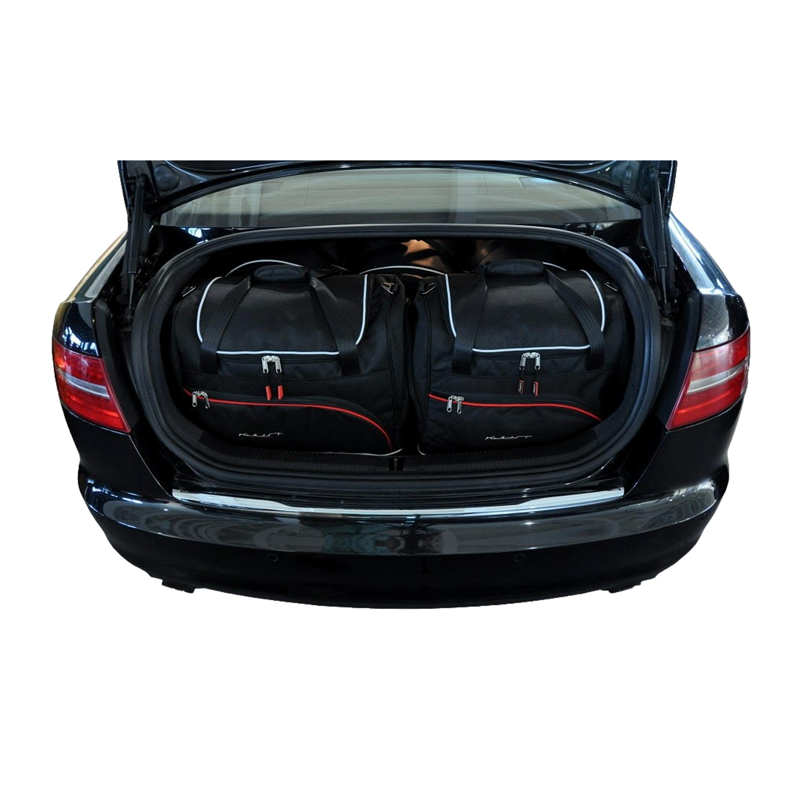 Fahrzeugspezifische Kofferraumtaschen-Sets – passend zu Ihrem AUDI A6 C6 Nutzen Sie das Platzangebot Ihres Kofferraums maximal aus! Unsere KJUST Taschensets sind exakt auf den Kofferraum des AUDI A6 C6 angepasst – für optimale Raumnutzung, sicheren Transport und perfekte Ordnung. Mit ihren unterschiedlichen Größen- und Formaten sind sie speziell konzipiert für alle, die einen aktiven Lebensstil lieben und Wert auf Qualität legen – ob im Fitnessstudio, beim Outdoor-Wochenende oder im Urlaub. Alle enthaltenen Taschen begeistern mit dem gleichen eleganten, zeitlosen Design. Die KJUST Rollen-Reisetasche überzeugt als hochwertige und vielseitige Reisetasche mit der klug durchdachten Form, seinem modernen Design, dem strapazierfähigen Material und seiner Detailgestaltung. Mit seinen langlebigen Rollen und dem ergonomischen Teleskopgriff ermöglicht der KJUST Rollen-Reisetasche eine bequeme Fortbewegung auf allen Arten von Oberflächen. Sie können die Rollen-Reisetasche ohne großen Kraftaufwand mühelos neben sich herziehen und dank des stabilen Tragegriffs auch bequem tragen, wenn es erforderlich ist. Die Sporttasche von KJUST ist mit einem verstellbaren Schultergurt und gepolsterten Tragegriffen ausgestattet, um Ihnen einen komfortablen Transport zu ermöglichen. Auf diese Weise können Sie die Tasche auch im vollgefüllten Zustand bequem über der Schulter tragen oder in der Hand halten. Mit einem großzügigen Hauptfach bietet die Tasche ausreichend Platz für Sportkleidung, Handtücher und andere Sport-Utensilien. Dank praktischer Innen- und Außentaschen können Sie auch kleinere Gegenstände geordnet verstauen. Die klug durchdachte Tasche verfügt zudem über ein separates Fach für Schuhe oder schmutzige Kleidung. Die KJUST Taschen überzeugen nicht nur durch ihre Funktionalität, sondern auch durch ihr ansprechendes Design. Bestellen Sie jetzt und genießen Sie Vorteile eines perfekt aufeinander abgestimmten Sets für Ihren AUDI A6 C6.