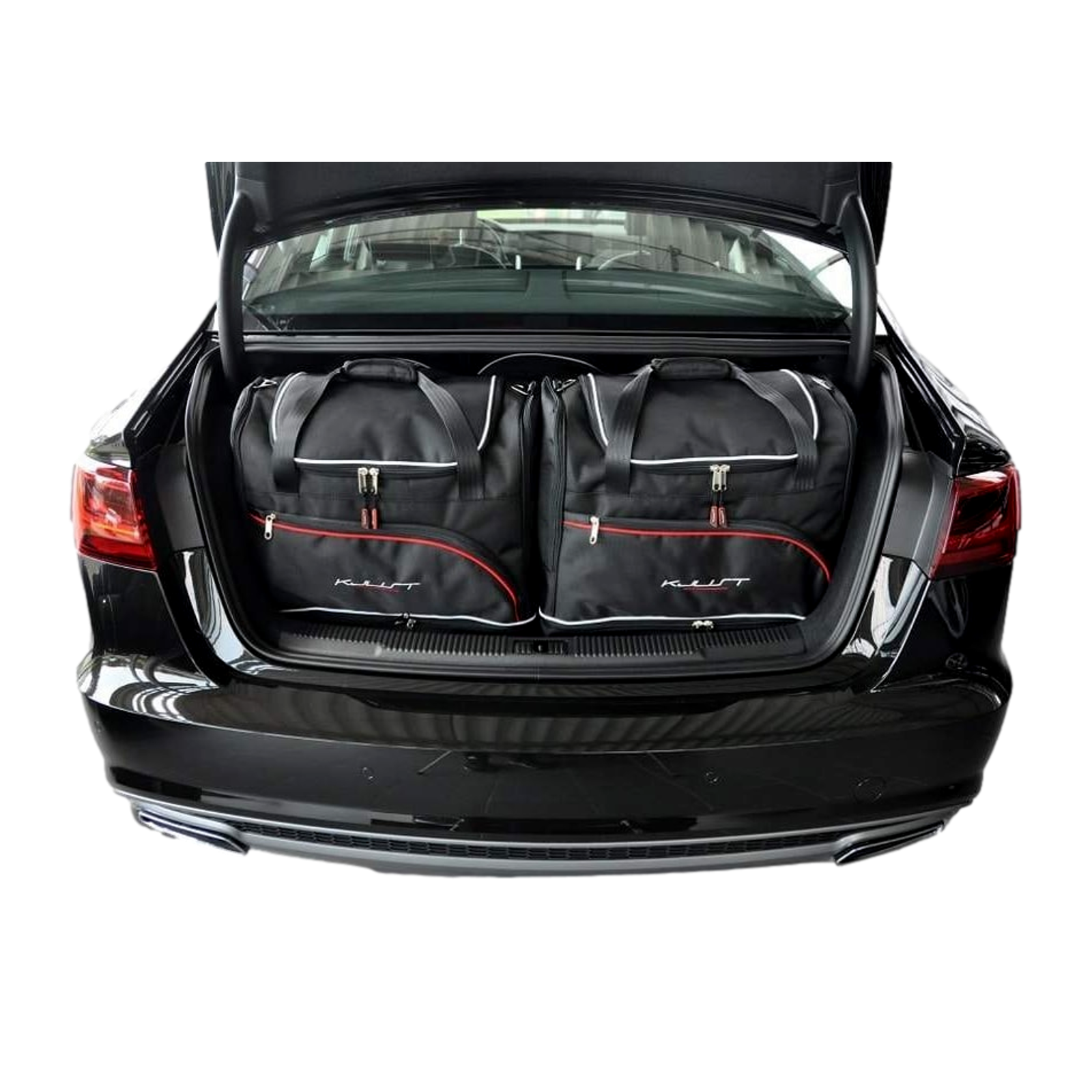 Fahrzeugspezifische Kofferraumtaschen-Sets – passend zu Ihrem AUDI A6 C7 Nutzen Sie das Platzangebot Ihres Kofferraums maximal aus! Unsere KJUST Taschensets sind exakt auf den Kofferraum des AUDI A6 C7 angepasst – für optimale Raumnutzung, sicheren Transport und perfekte Ordnung. Mit ihren unterschiedlichen Größen- und Formaten sind sie speziell konzipiert für alle, die einen aktiven Lebensstil lieben und Wert auf Qualität legen – ob im Fitnessstudio, beim Outdoor-Wochenende oder im Urlaub. Alle enthaltenen Taschen begeistern mit dem gleichen eleganten, zeitlosen Design. Die KJUST Rollen-Reisetasche überzeugt als hochwertige und vielseitige Reisetasche mit der klug durchdachten Form, seinem modernen Design, dem strapazierfähigen Material und seiner Detailgestaltung. Mit seinen langlebigen Rollen und dem ergonomischen Teleskopgriff ermöglicht der KJUST Rollen-Reisetasche eine bequeme Fortbewegung auf allen Arten von Oberflächen. Sie können die Rollen-Reisetasche ohne großen Kraftaufwand mühelos neben sich herziehen und dank des stabilen Tragegriffs auch bequem tragen, wenn es erforderlich ist. Die Sporttasche von KJUST ist mit einem verstellbaren Schultergurt und gepolsterten Tragegriffen ausgestattet, um Ihnen einen komfortablen Transport zu ermöglichen. Auf diese Weise können Sie die Tasche auch im vollgefüllten Zustand bequem über der Schulter tragen oder in der Hand halten. Mit einem großzügigen Hauptfach bietet die Tasche ausreichend Platz für Sportkleidung, Handtücher und andere Sport-Utensilien. Dank praktischer Innen- und Außentaschen können Sie auch kleinere Gegenstände geordnet verstauen. Die klug durchdachte Tasche verfügt zudem über ein separates Fach für Schuhe oder schmutzige Kleidung. Die KJUST Taschen überzeugen nicht nur durch ihre Funktionalität, sondern auch durch ihr ansprechendes Design. Bestellen Sie jetzt und genießen Sie Vorteile eines perfekt aufeinander abgestimmten Sets für Ihren AUDI A6 C7.