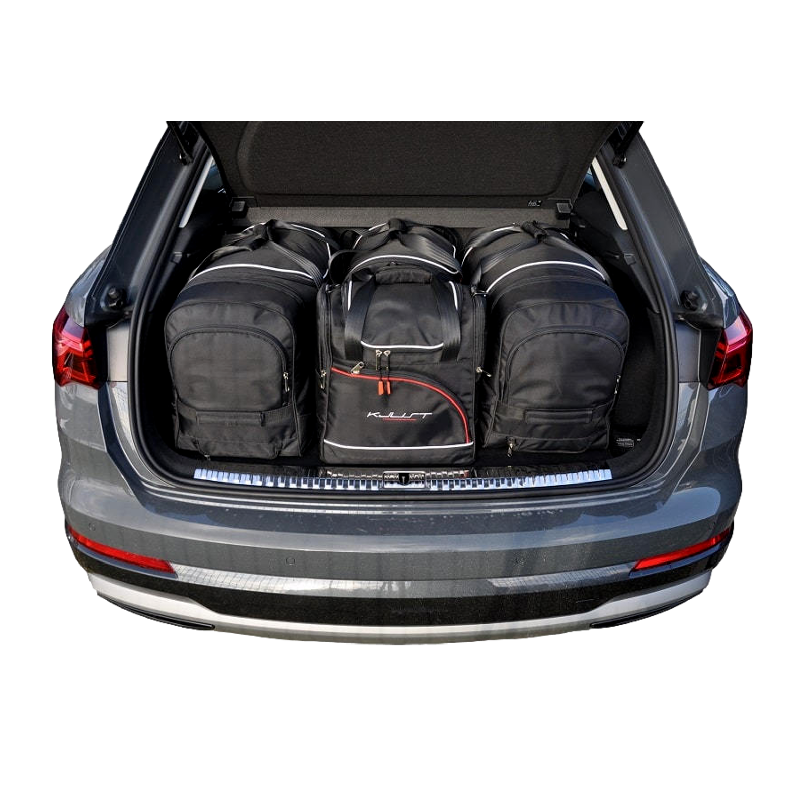 Fahrzeugspezifische Kofferraumtaschen-Sets – passend zu Ihrem AUDI Q3 Nutzen Sie das Platzangebot Ihres Kofferraums maximal aus! Unsere KJUST Taschensets sind exakt auf den Kofferraum des AUDI Q3 angepasst – für optimale Raumnutzung, sicheren Transport und perfekte Ordnung. Mit ihren unterschiedlichen Größen- und Formaten sind sie speziell konzipiert für alle, die einen aktiven Lebensstil lieben und Wert auf Qualität legen – ob im Fitnessstudio, beim Outdoor-Wochenende oder im Urlaub. Alle enthaltenen Taschen begeistern mit dem gleichen eleganten, zeitlosen Design. Die KJUST Rollen-Reisetasche überzeugt als hochwertige und vielseitige Reisetasche mit der klug durchdachten Form, seinem modernen Design, dem strapazierfähigen Material und seiner Detailgestaltung. Mit seinen langlebigen Rollen und dem ergonomischen Teleskopgriff ermöglicht der KJUST Rollen-Reisetasche eine bequeme Fortbewegung auf allen Arten von Oberflächen. Sie können die Rollen-Reisetasche ohne großen Kraftaufwand mühelos neben sich herziehen und dank des stabilen Tragegriffs auch bequem tragen, wenn es erforderlich ist. Die KJUST Flugzeugtasche ist eine erstklassige Wahl für alle, die viel reisen und Wert auf Komfort, Stil und Funktionalität legen. Sie ist speziell für den Einsatz in Flugzeugkabinen entwickelt und erfüllt mit ihrer hochwertigen Verarbeitung, den standardisierten Größen und der praktischen Fächeraufteilung alle Anforderungen an eine moderne Reisetasche. Die Tasche bietet mit ihrem geräumigen Hauptfach ausreichend Platz für Ihre persönlichen Gegenstände. Ein Extrafach fürs Notebook macht sie businesstauglich. Zudem verfügt sie über mehrere kleinere Fächer für wichtige Utensilien wie Dokumente, Geldbörsen, Schlüssel und andere Kleinigkeiten. Die KJUST Flugzeugtasche wurde mit Blick auf den modernen Reisenden entworfen. Sie verfügt über einen speziellen Trolley-Riemen, der das einfache und bequeme Befestigen an einem Trolley-Griff ermöglicht. So haben Sie Ihre Tasche immer griffbereit und müssen sie nicht tragen, wenn Sie längere Strecken zurücklegen. Darüber hinaus ist die Tasche mit einem abnehmbaren Schultergurt ausgestattet, der Ihnen verschiedene Tragemöglichkeiten bietet. Die Sporttasche von KJUST ist mit einem verstellbaren Schultergurt und gepolsterten Tragegriffen ausgestattet, um Ihnen einen komfortablen Transport zu ermöglichen. Auf diese Weise können Sie die Tasche auch im vollgefüllten Zustand bequem über der Schulter tragen oder in der Hand halten. Mit einem großzügigen Hauptfach bietet die Tasche ausreichend Platz für Sportkleidung, Handtücher und andere Sport-Utensilien. Dank praktischer Innen- und Außentaschen können Sie auch kleinere Gegenstände geordnet verstauen. Die klug durchdachte Tasche verfügt zudem über ein separates Fach für Schuhe oder schmutzige Kleidung. Die KJUST Taschen überzeugen nicht nur durch ihre Funktionalität, sondern auch durch ihr ansprechendes Design. Bestellen Sie jetzt und genießen Sie Vorteile eines perfekt aufeinander abgestimmten Sets für Ihren AUDI Q3.