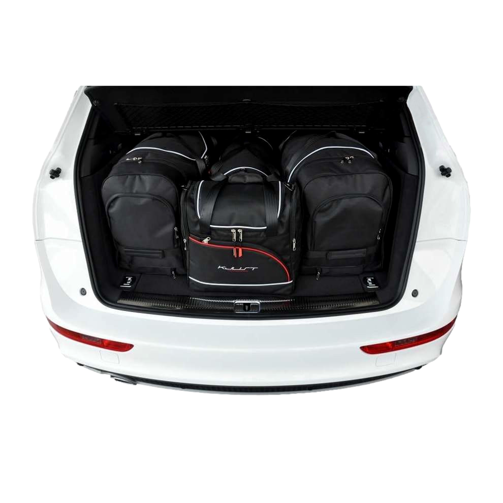 Fahrzeugspezifische Kofferraumtaschen-Sets – passend zu Ihrem AUDI Q5 Nutzen Sie das Platzangebot Ihres Kofferraums maximal aus! Unsere KJUST Taschensets sind exakt auf den Kofferraum des AUDI Q5 angepasst – für optimale Raumnutzung, sicheren Transport und perfekte Ordnung. Mit ihren unterschiedlichen Größen- und Formaten sind sie speziell konzipiert für alle, die einen aktiven Lebensstil lieben und Wert auf Qualität legen – ob im Fitnessstudio, beim Outdoor-Wochenende oder im Urlaub. Alle enthaltenen Taschen begeistern mit dem gleichen eleganten, zeitlosen Design. Die KJUST Rollen-Reisetasche überzeugt als hochwertige und vielseitige Reisetasche mit der klug durchdachten Form, seinem modernen Design, dem strapazierfähigen Material und seiner Detailgestaltung. Mit seinen langlebigen Rollen und dem ergonomischen Teleskopgriff ermöglicht der KJUST Rollen-Reisetasche eine bequeme Fortbewegung auf allen Arten von Oberflächen. Sie können die Rollen-Reisetasche ohne großen Kraftaufwand mühelos neben sich herziehen und dank des stabilen Tragegriffs auch bequem tragen, wenn es erforderlich ist. Die KJUST Flugzeugtasche ist eine erstklassige Wahl für alle, die viel reisen und Wert auf Komfort, Stil und Funktionalität legen. Sie ist speziell für den Einsatz in Flugzeugkabinen entwickelt und erfüllt mit ihrer hochwertigen Verarbeitung, den standardisierten Größen und der praktischen Fächeraufteilung alle Anforderungen an eine moderne Reisetasche. Die Tasche bietet mit ihrem geräumigen Hauptfach ausreichend Platz für Ihre persönlichen Gegenstände. Ein Extrafach fürs Notebook macht sie businesstauglich. Zudem verfügt sie über mehrere kleinere Fächer für wichtige Utensilien wie Dokumente, Geldbörsen, Schlüssel und andere Kleinigkeiten. Die KJUST Flugzeugtasche wurde mit Blick auf den modernen Reisenden entworfen. Sie verfügt über einen speziellen Trolley-Riemen, der das einfache und bequeme Befestigen an einem Trolley-Griff ermöglicht. So haben Sie Ihre Tasche immer griffbereit und müssen sie nicht tragen, wenn Sie längere Strecken zurücklegen. Darüber hinaus ist die Tasche mit einem abnehmbaren Schultergurt ausgestattet, der Ihnen verschiedene Tragemöglichkeiten bietet. Die KJUST Taschen überzeugen nicht nur durch ihre Funktionalität, sondern auch durch ihr ansprechendes Design. Bestellen Sie jetzt und genießen Sie Vorteile eines perfekt aufeinander abgestimmten Sets für Ihren AUDI Q5.