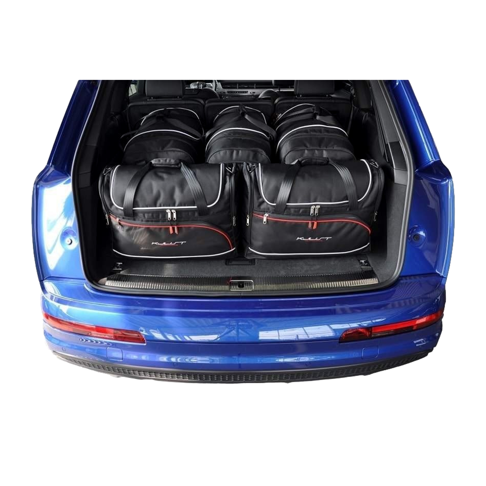 Fahrzeugspezifische Kofferraumtaschen-Sets – passend zu Ihrem AUDI Q7 Nutzen Sie das Platzangebot Ihres Kofferraums maximal aus! Unsere KJUST Taschensets sind exakt auf den Kofferraum des AUDI Q7 angepasst – für optimale Raumnutzung, sicheren Transport und perfekte Ordnung. Mit ihren unterschiedlichen Größen- und Formaten sind sie speziell konzipiert für alle, die einen aktiven Lebensstil lieben und Wert auf Qualität legen – ob im Fitnessstudio, beim Outdoor-Wochenende oder im Urlaub. Alle enthaltenen Taschen begeistern mit dem gleichen eleganten, zeitlosen Design. Die KJUST Rollen-Reisetasche überzeugt als hochwertige und vielseitige Reisetasche mit der klug durchdachten Form, seinem modernen Design, dem strapazierfähigen Material und seiner Detailgestaltung. Mit seinen langlebigen Rollen und dem ergonomischen Teleskopgriff ermöglicht der KJUST Rollen-Reisetasche eine bequeme Fortbewegung auf allen Arten von Oberflächen. Sie können die Rollen-Reisetasche ohne großen Kraftaufwand mühelos neben sich herziehen und dank des stabilen Tragegriffs auch bequem tragen, wenn es erforderlich ist. Die KJUST Flugzeugtasche ist eine erstklassige Wahl für alle, die viel reisen und Wert auf Komfort, Stil und Funktionalität legen. Sie ist speziell für den Einsatz in Flugzeugkabinen entwickelt und erfüllt mit ihrer hochwertigen Verarbeitung, den standardisierten Größen und der praktischen Fächeraufteilung alle Anforderungen an eine moderne Reisetasche. Die Tasche bietet mit ihrem geräumigen Hauptfach ausreichend Platz für Ihre persönlichen Gegenstände. Ein Extrafach fürs Notebook macht sie businesstauglich. Zudem verfügt sie über mehrere kleinere Fächer für wichtige Utensilien wie Dokumente, Geldbörsen, Schlüssel und andere Kleinigkeiten. Die KJUST Flugzeugtasche wurde mit Blick auf den modernen Reisenden entworfen. Sie verfügt über einen speziellen Trolley-Riemen, der das einfache und bequeme Befestigen an einem Trolley-Griff ermöglicht. So haben Sie Ihre Tasche immer griffbereit und müssen sie nicht tragen, wenn Sie längere Strecken zurücklegen. Darüber hinaus ist die Tasche mit einem abnehmbaren Schultergurt ausgestattet, der Ihnen verschiedene Tragemöglichkeiten bietet. Die KJUST Taschen überzeugen nicht nur durch ihre Funktionalität, sondern auch durch ihr ansprechendes Design. Bestellen Sie jetzt und genießen Sie Vorteile eines perfekt aufeinander abgestimmten Sets für Ihren AUDI Q7.
