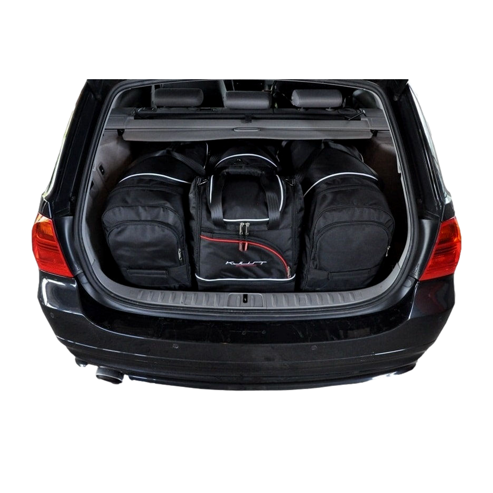 Fahrzeugspezifische Kofferraumtaschen-Sets – passend zu Ihrem BMW 3 Touring Nutzen Sie das Platzangebot Ihres Kofferraums maximal aus! Unsere KJUST Taschensets sind exakt auf den Kofferraum des BMW 3 Touring angepasst – für optimale Raumnutzung, sicheren Transport und perfekte Ordnung. Mit ihren unterschiedlichen Größen- und Formaten sind sie speziell konzipiert für alle, die einen aktiven Lebensstil lieben und Wert auf Qualität legen – ob im Fitnessstudio, beim Outdoor-Wochenende oder im Urlaub. Alle enthaltenen Taschen begeistern mit dem gleichen eleganten, zeitlosen Design. Die KJUST Rollen-Reisetasche überzeugt als hochwertige und vielseitige Reisetasche mit der klug durchdachten Form, seinem modernen Design, dem strapazierfähigen Material und seiner Detailgestaltung. Mit seinen langlebigen Rollen und dem ergonomischen Teleskopgriff ermöglicht der KJUST Rollen-Reisetasche eine bequeme Fortbewegung auf allen Arten von Oberflächen. Sie können die Rollen-Reisetasche ohne großen Kraftaufwand mühelos neben sich herziehen und dank des stabilen Tragegriffs auch bequem tragen, wenn es erforderlich ist. Die Sporttasche von KJUST ist mit einem verstellbaren Schultergurt und gepolsterten Tragegriffen ausgestattet, um Ihnen einen komfortablen Transport zu ermöglichen. Auf diese Weise können Sie die Tasche auch im vollgefüllten Zustand bequem über der Schulter tragen oder in der Hand halten. Mit einem großzügigen Hauptfach bietet die Tasche ausreichend Platz für Sportkleidung, Handtücher und andere Sport-Utensilien. Dank praktischer Innen- und Außentaschen können Sie auch kleinere Gegenstände geordnet verstauen. Die klug durchdachte Tasche verfügt zudem über ein separates Fach für Schuhe oder schmutzige Kleidung. Die KJUST Taschen überzeugen nicht nur durch ihre Funktionalität, sondern auch durch ihr ansprechendes Design. Bestellen Sie jetzt und genießen Sie Vorteile eines perfekt aufeinander abgestimmten Sets für Ihren BMW 3 Touring.