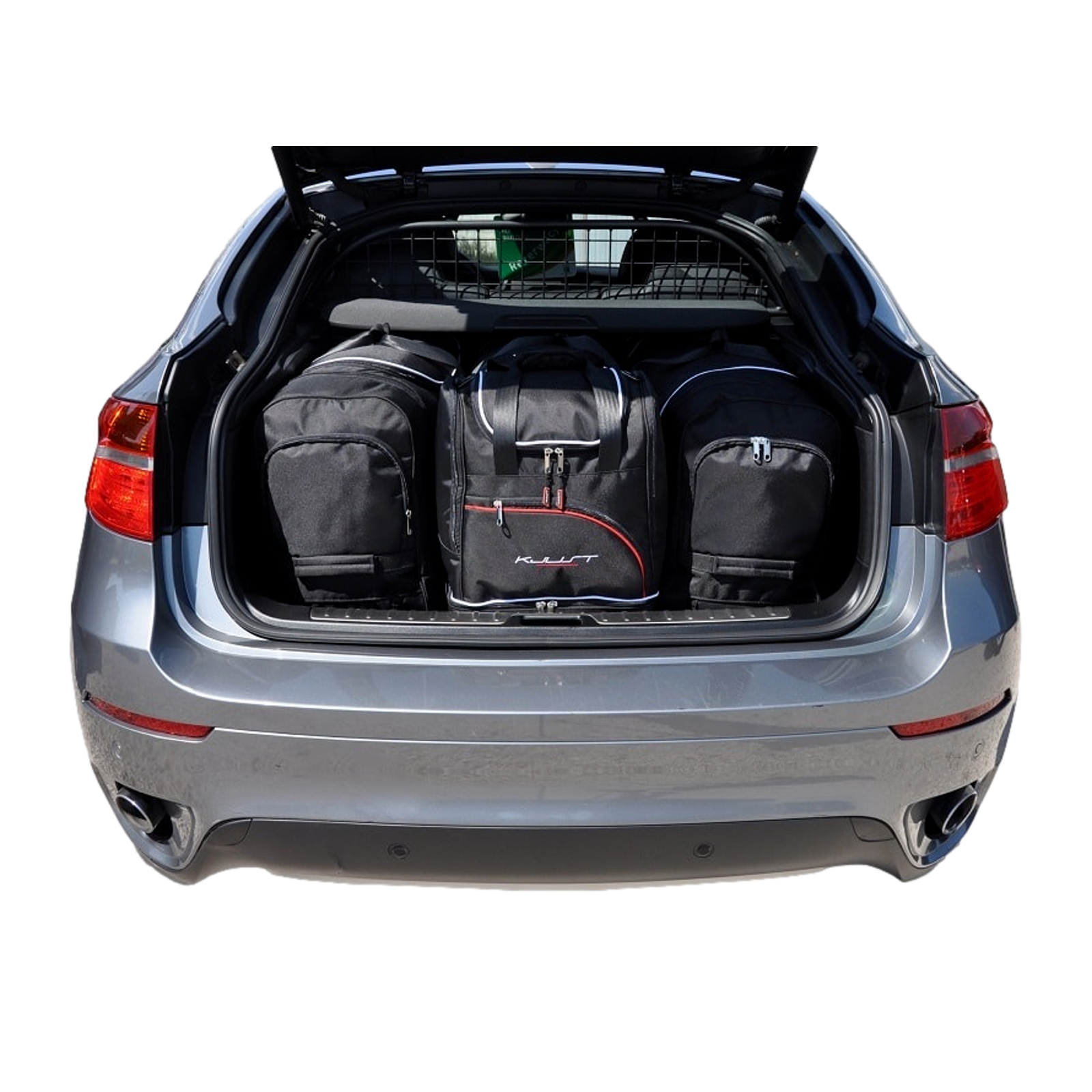 Fahrzeugspezifische Kofferraumtaschen-Sets – passend zu Ihrem BMW X6 Nutzen Sie das Platzangebot Ihres Kofferraums maximal aus! Unsere KJUST Taschensets sind exakt auf den Kofferraum des BMW X6 angepasst – für optimale Raumnutzung, sicheren Transport und perfekte Ordnung. Mit ihren unterschiedlichen Größen- und Formaten sind sie speziell konzipiert für alle, die einen aktiven Lebensstil lieben und Wert auf Qualität legen – ob im Fitnessstudio, beim Outdoor-Wochenende oder im Urlaub. Alle enthaltenen Taschen begeistern mit dem gleichen eleganten, zeitlosen Design. Die KJUST Rollen-Reisetasche überzeugt als hochwertige und vielseitige Reisetasche mit der klug durchdachten Form, seinem modernen Design, dem strapazierfähigen Material und seiner Detailgestaltung. Mit seinen langlebigen Rollen und dem ergonomischen Teleskopgriff ermöglicht der KJUST Rollen-Reisetasche eine bequeme Fortbewegung auf allen Arten von Oberflächen. Sie können die Rollen-Reisetasche ohne großen Kraftaufwand mühelos neben sich herziehen und dank des stabilen Tragegriffs auch bequem tragen, wenn es erforderlich ist. Die Sporttasche von KJUST ist mit einem verstellbaren Schultergurt und gepolsterten Tragegriffen ausgestattet, um Ihnen einen komfortablen Transport zu ermöglichen. Auf diese Weise können Sie die Tasche auch im vollgefüllten Zustand bequem über der Schulter tragen oder in der Hand halten. Mit einem großzügigen Hauptfach bietet die Tasche ausreichend Platz für Sportkleidung, Handtücher und andere Sport-Utensilien. Dank praktischer Innen- und Außentaschen können Sie auch kleinere Gegenstände geordnet verstauen. Die klug durchdachte Tasche verfügt zudem über ein separates Fach für Schuhe oder schmutzige Kleidung. Die KJUST Taschen überzeugen nicht nur durch ihre Funktionalität, sondern auch durch ihr ansprechendes Design. Bestellen Sie jetzt und genießen Sie Vorteile eines perfekt aufeinander abgestimmten Sets für Ihren BMW X6.