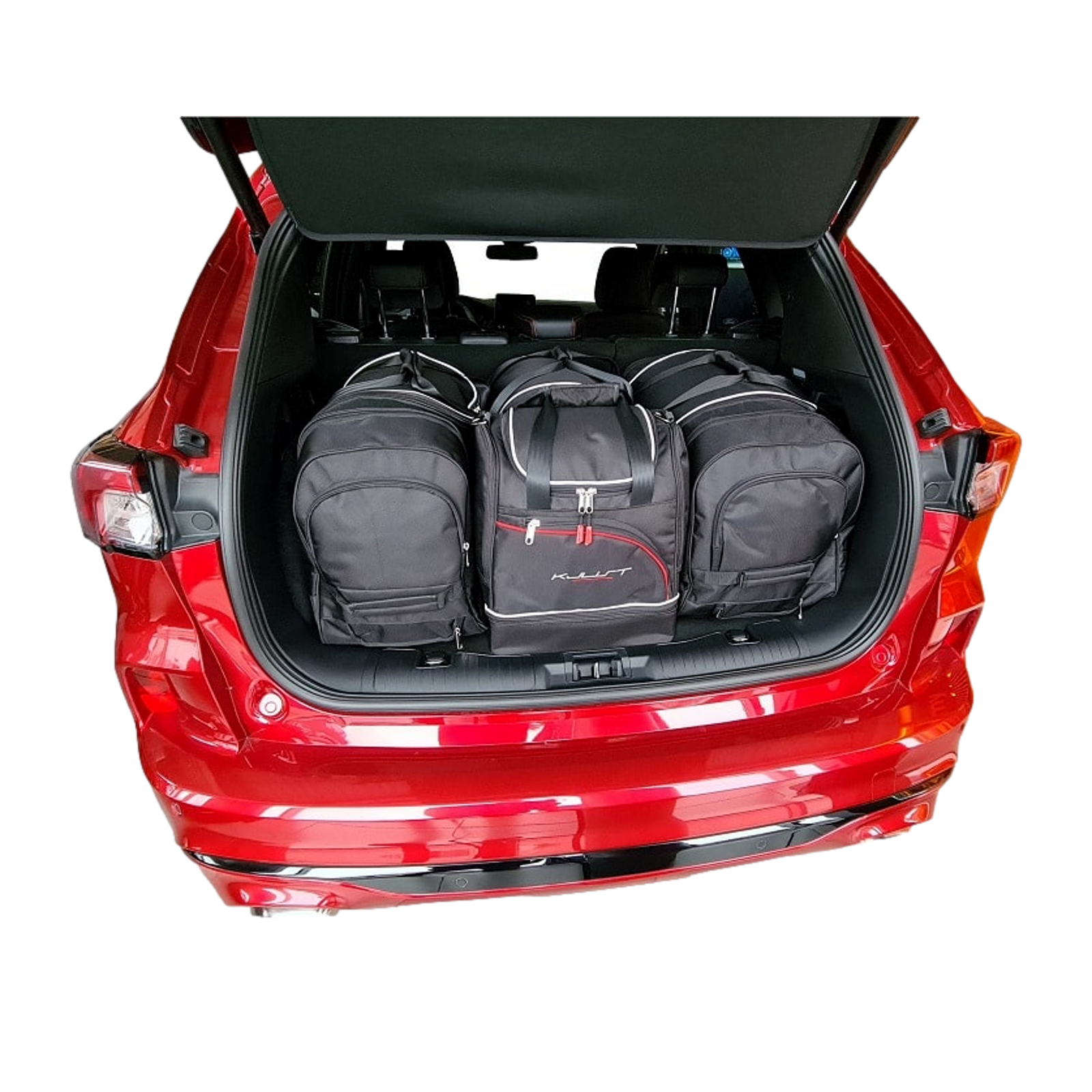Fahrzeugspezifische Kofferraumtaschen-Sets – passend zu Ihrem FORD KUGA III Nutzen Sie das Platzangebot Ihres Kofferraums maximal aus! Unsere KJUST Taschensets sind exakt auf den Kofferraum des FORD KUGA III angepasst – für optimale Raumnutzung, sicheren Transport und perfekte Ordnung. Mit ihren unterschiedlichen Größen- und Formaten sind sie speziell konzipiert für alle, die einen aktiven Lebensstil lieben und Wert auf Qualität legen – ob im Fitnessstudio, beim Outdoor-Wochenende oder im Urlaub. Alle enthaltenen Taschen begeistern mit dem gleichen eleganten, zeitlosen Design. Die KJUST Rollen-Reisetasche überzeugt als hochwertige und vielseitige Reisetasche mit der klug durchdachten Form, seinem modernen Design, dem strapazierfähigen Material und seiner Detailgestaltung. Mit seinen langlebigen Rollen und dem ergonomischen Teleskopgriff ermöglicht der KJUST Rollen-Reisetasche eine bequeme Fortbewegung auf allen Arten von Oberflächen. Sie können die Rollen-Reisetasche ohne großen Kraftaufwand mühelos neben sich herziehen und dank des stabilen Tragegriffs auch bequem tragen, wenn es erforderlich ist. Die Sporttasche von KJUST ist mit einem verstellbaren Schultergurt und gepolsterten Tragegriffen ausgestattet, um Ihnen einen komfortablen Transport zu ermöglichen. Auf diese Weise können Sie die Tasche auch im vollgefüllten Zustand bequem über der Schulter tragen oder in der Hand halten. Mit einem großzügigen Hauptfach bietet die Tasche ausreichend Platz für Sportkleidung, Handtücher und andere Sport-Utensilien. Dank praktischer Innen- und Außentaschen können Sie auch kleinere Gegenstände geordnet verstauen. Die klug durchdachte Tasche verfügt zudem über ein separates Fach für Schuhe oder schmutzige Kleidung. Die KJUST Taschen überzeugen nicht nur durch ihre Funktionalität, sondern auch durch ihr ansprechendes Design. Bestellen Sie jetzt und genießen Sie Vorteile eines perfekt aufeinander abgestimmten Sets für Ihren FORD KUGA III.