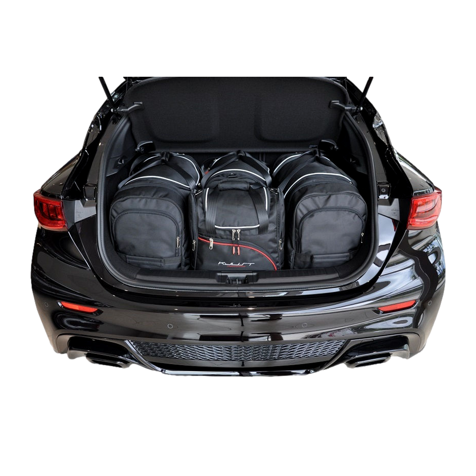 Fahrzeugspezifische Kofferraumtaschen-Sets – passend zu Ihrem INFINITI Q30 Nutzen Sie das Platzangebot Ihres Kofferraums maximal aus! Unsere KJUST Taschensets sind exakt auf den Kofferraum des INFINITI Q30 angepasst – für optimale Raumnutzung, sicheren Transport und perfekte Ordnung. Mit ihren unterschiedlichen Größen- und Formaten sind sie speziell konzipiert für alle, die einen aktiven Lebensstil lieben und Wert auf Qualität legen – ob im Fitnessstudio, beim Outdoor-Wochenende oder im Urlaub. Alle enthaltenen Taschen begeistern mit dem gleichen eleganten, zeitlosen Design. Die KJUST Rollen-Reisetasche überzeugt als hochwertige und vielseitige Reisetasche mit der klug durchdachten Form, seinem modernen Design, dem strapazierfähigen Material und seiner Detailgestaltung. Mit seinen langlebigen Rollen und dem ergonomischen Teleskopgriff ermöglicht der KJUST Rollen-Reisetasche eine bequeme Fortbewegung auf allen Arten von Oberflächen. Sie können die Rollen-Reisetasche ohne großen Kraftaufwand mühelos neben sich herziehen und dank des stabilen Tragegriffs auch bequem tragen, wenn es erforderlich ist. Die KJUST Flugzeugtasche ist eine erstklassige Wahl für alle, die viel reisen und Wert auf Komfort, Stil und Funktionalität legen. Sie ist speziell für den Einsatz in Flugzeugkabinen entwickelt und erfüllt mit ihrer hochwertigen Verarbeitung, den standardisierten Größen und der praktischen Fächeraufteilung alle Anforderungen an eine moderne Reisetasche. Die Tasche bietet mit ihrem geräumigen Hauptfach ausreichend Platz für Ihre persönlichen Gegenstände. Ein Extrafach fürs Notebook macht sie businesstauglich. Zudem verfügt sie über mehrere kleinere Fächer für wichtige Utensilien wie Dokumente, Geldbörsen, Schlüssel und andere Kleinigkeiten. Die KJUST Flugzeugtasche wurde mit Blick auf den modernen Reisenden entworfen. Sie verfügt über einen speziellen Trolley-Riemen, der das einfache und bequeme Befestigen an einem Trolley-Griff ermöglicht. So haben Sie Ihre Tasche immer griffbereit und müssen sie nicht tragen, wenn Sie längere Strecken zurücklegen. Darüber hinaus ist die Tasche mit einem abnehmbaren Schultergurt ausgestattet, der Ihnen verschiedene Tragemöglichkeiten bietet. Die Sporttasche von KJUST ist mit einem verstellbaren Schultergurt und gepolsterten Tragegriffen ausgestattet, um Ihnen einen komfortablen Transport zu ermöglichen. Auf diese Weise können Sie die Tasche auch im vollgefüllten Zustand bequem über der Schulter tragen oder in der Hand halten. Mit einem großzügigen Hauptfach bietet die Tasche ausreichend Platz für Sportkleidung, Handtücher und andere Sport-Utensilien. Dank praktischer Innen- und Außentaschen können Sie auch kleinere Gegenstände geordnet verstauen. Die klug durchdachte Tasche verfügt zudem über ein separates Fach für Schuhe oder schmutzige Kleidung. Die KJUST Taschen überzeugen nicht nur durch ihre Funktionalität, sondern auch durch ihr ansprechendes Design. Bestellen Sie jetzt und genießen Sie Vorteile eines perfekt aufeinander abgestimmten Sets für Ihren INFINITI Q30.