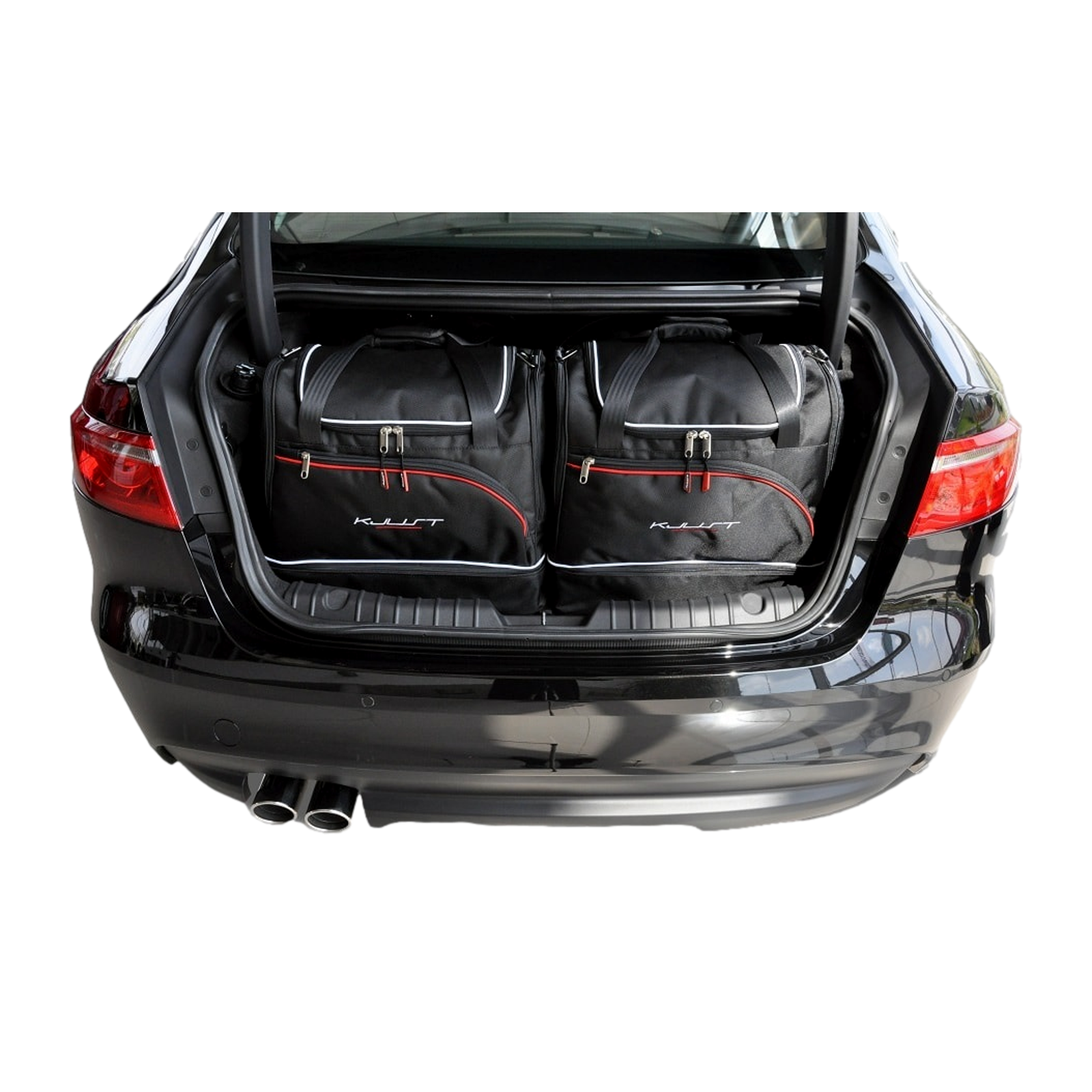 Fahrzeugspezifische Kofferraumtaschen-Sets – passend zu Ihrem JAGUAR XF II Nutzen Sie das Platzangebot Ihres Kofferraums maximal aus! Unsere KJUST Taschensets sind exakt auf den Kofferraum des JAGUAR XF II angepasst – für optimale Raumnutzung, sicheren Transport und perfekte Ordnung. Mit ihren unterschiedlichen Größen- und Formaten sind sie speziell konzipiert für alle, die einen aktiven Lebensstil lieben und Wert auf Qualität legen – ob im Fitnessstudio, beim Outdoor-Wochenende oder im Urlaub. Alle enthaltenen Taschen begeistern mit dem gleichen eleganten, zeitlosen Design. Die KJUST Rollen-Reisetasche überzeugt als hochwertige und vielseitige Reisetasche mit der klug durchdachten Form, seinem modernen Design, dem strapazierfähigen Material und seiner Detailgestaltung. Mit seinen langlebigen Rollen und dem ergonomischen Teleskopgriff ermöglicht der KJUST Rollen-Reisetasche eine bequeme Fortbewegung auf allen Arten von Oberflächen. Sie können die Rollen-Reisetasche ohne großen Kraftaufwand mühelos neben sich herziehen und dank des stabilen Tragegriffs auch bequem tragen, wenn es erforderlich ist. Die Sporttasche von KJUST ist mit einem verstellbaren Schultergurt und gepolsterten Tragegriffen ausgestattet, um Ihnen einen komfortablen Transport zu ermöglichen. Auf diese Weise können Sie die Tasche auch im vollgefüllten Zustand bequem über der Schulter tragen oder in der Hand halten. Mit einem großzügigen Hauptfach bietet die Tasche ausreichend Platz für Sportkleidung, Handtücher und andere Sport-Utensilien. Dank praktischer Innen- und Außentaschen können Sie auch kleinere Gegenstände geordnet verstauen. Die klug durchdachte Tasche verfügt zudem über ein separates Fach für Schuhe oder schmutzige Kleidung. Die KJUST Taschen überzeugen nicht nur durch ihre Funktionalität, sondern auch durch ihr ansprechendes Design. Bestellen Sie jetzt und genießen Sie Vorteile eines perfekt aufeinander abgestimmten Sets für Ihren JAGUAR XF II.