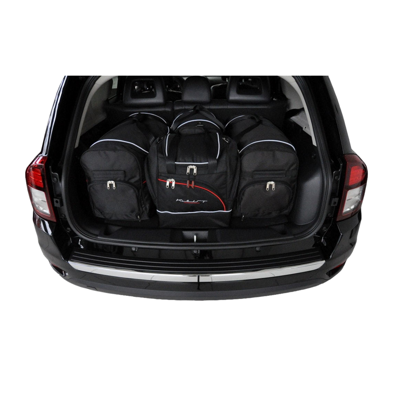 Fahrzeugspezifische Kofferraumtaschen-Sets – passend zu Ihrem JEEP COMPASS Nutzen Sie das Platzangebot Ihres Kofferraums maximal aus! Unsere KJUST Taschensets sind exakt auf den Kofferraum des JEEP COMPASS angepasst – für optimale Raumnutzung, sicheren Transport und perfekte Ordnung. Mit ihren unterschiedlichen Größen- und Formaten sind sie speziell konzipiert für alle, die einen aktiven Lebensstil lieben und Wert auf Qualität legen – ob im Fitnessstudio, beim Outdoor-Wochenende oder im Urlaub. Alle enthaltenen Taschen begeistern mit dem gleichen eleganten, zeitlosen Design. Die KJUST Rollen-Reisetasche überzeugt als hochwertige und vielseitige Reisetasche mit der klug durchdachten Form, seinem modernen Design, dem strapazierfähigen Material und seiner Detailgestaltung. Mit seinen langlebigen Rollen und dem ergonomischen Teleskopgriff ermöglicht der KJUST Rollen-Reisetasche eine bequeme Fortbewegung auf allen Arten von Oberflächen. Sie können die Rollen-Reisetasche ohne großen Kraftaufwand mühelos neben sich herziehen und dank des stabilen Tragegriffs auch bequem tragen, wenn es erforderlich ist. Die Sporttasche von KJUST ist mit einem verstellbaren Schultergurt und gepolsterten Tragegriffen ausgestattet, um Ihnen einen komfortablen Transport zu ermöglichen. Auf diese Weise können Sie die Tasche auch im vollgefüllten Zustand bequem über der Schulter tragen oder in der Hand halten. Mit einem großzügigen Hauptfach bietet die Tasche ausreichend Platz für Sportkleidung, Handtücher und andere Sport-Utensilien. Dank praktischer Innen- und Außentaschen können Sie auch kleinere Gegenstände geordnet verstauen. Die klug durchdachte Tasche verfügt zudem über ein separates Fach für Schuhe oder schmutzige Kleidung. Die KJUST Taschen überzeugen nicht nur durch ihre Funktionalität, sondern auch durch ihr ansprechendes Design. Bestellen Sie jetzt und genießen Sie Vorteile eines perfekt aufeinander abgestimmten Sets für Ihren JEEP COMPASS.