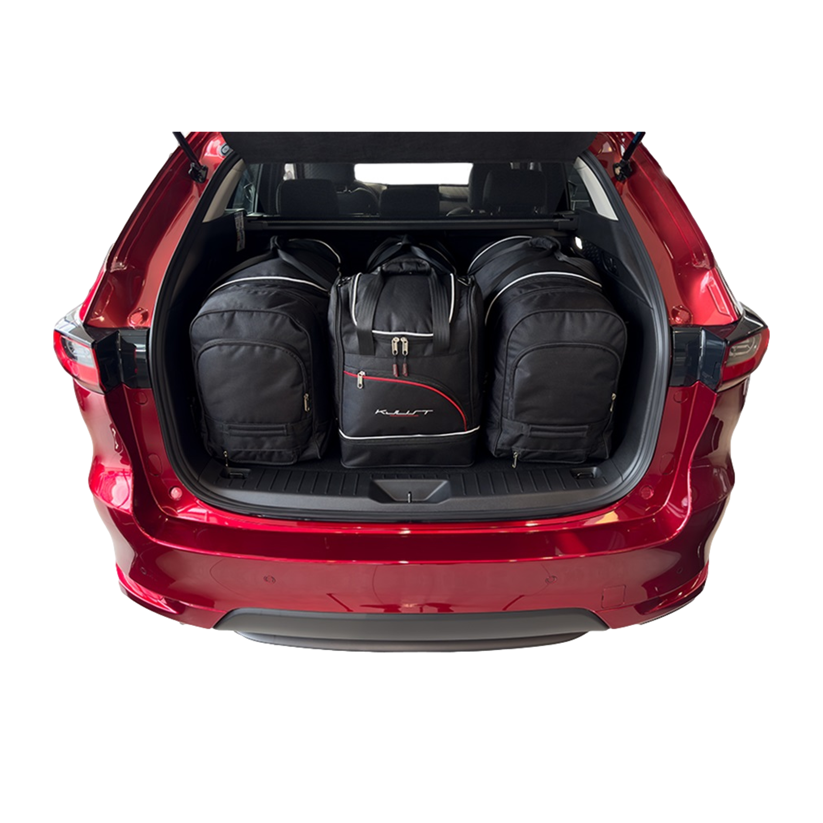 Fahrzeugspezifische Kofferraumtaschen-Sets – passend zu Ihrem MAZDA CX-60 Nutzen Sie das Platzangebot Ihres Kofferraums maximal aus! Unsere KJUST Taschensets sind exakt auf den Kofferraum des MAZDA CX-60 angepasst – für optimale Raumnutzung, sicheren Transport und perfekte Ordnung. Mit ihren unterschiedlichen Größen- und Formaten sind sie speziell konzipiert für alle, die einen aktiven Lebensstil lieben und Wert auf Qualität legen – ob im Fitnessstudio, beim Outdoor-Wochenende oder im Urlaub. Alle enthaltenen Taschen begeistern mit dem gleichen eleganten, zeitlosen Design. Die KJUST Rollen-Reisetasche überzeugt als hochwertige und vielseitige Reisetasche mit der klug durchdachten Form, seinem modernen Design, dem strapazierfähigen Material und seiner Detailgestaltung. Mit seinen langlebigen Rollen und dem ergonomischen Teleskopgriff ermöglicht der KJUST Rollen-Reisetasche eine bequeme Fortbewegung auf allen Arten von Oberflächen. Sie können die Rollen-Reisetasche ohne großen Kraftaufwand mühelos neben sich herziehen und dank des stabilen Tragegriffs auch bequem tragen, wenn es erforderlich ist. Die Sporttasche von KJUST ist mit einem verstellbaren Schultergurt und gepolsterten Tragegriffen ausgestattet, um Ihnen einen komfortablen Transport zu ermöglichen. Auf diese Weise können Sie die Tasche auch im vollgefüllten Zustand bequem über der Schulter tragen oder in der Hand halten. Mit einem großzügigen Hauptfach bietet die Tasche ausreichend Platz für Sportkleidung, Handtücher und andere Sport-Utensilien. Dank praktischer Innen- und Außentaschen können Sie auch kleinere Gegenstände geordnet verstauen. Die klug durchdachte Tasche verfügt zudem über ein separates Fach für Schuhe oder schmutzige Kleidung. Die KJUST Taschen überzeugen nicht nur durch ihre Funktionalität, sondern auch durch ihr ansprechendes Design. Bestellen Sie jetzt und genießen Sie Vorteile eines perfekt aufeinander abgestimmten Sets für Ihren MAZDA CX-60.