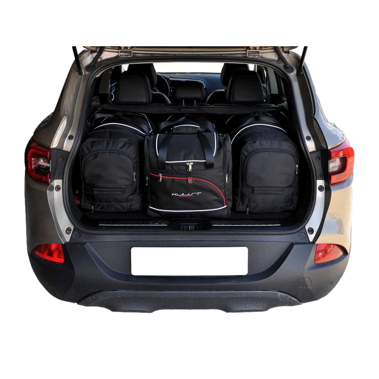 Fahrzeugspezifische Kofferraumtaschen-Sets – passend zu Ihrem RENAULT KADJAR Nutzen Sie das Platzangebot Ihres Kofferraums maximal aus! Unsere KJUST Taschensets sind exakt auf den Kofferraum des RENAULT KADJAR angepasst – für optimale Raumnutzung, sicheren Transport und perfekte Ordnung. Mit ihren unterschiedlichen Größen- und Formaten sind sie speziell konzipiert für alle, die einen aktiven Lebensstil lieben und Wert auf Qualität legen – ob im Fitnessstudio, beim Outdoor-Wochenende oder im Urlaub. Alle enthaltenen Taschen begeistern mit dem gleichen eleganten, zeitlosen Design. Die KJUST Rollen-Reisetasche überzeugt als hochwertige und vielseitige Reisetasche mit der klug durchdachten Form, seinem modernen Design, dem strapazierfähigen Material und seiner Detailgestaltung. Mit seinen langlebigen Rollen und dem ergonomischen Teleskopgriff ermöglicht der KJUST Rollen-Reisetasche eine bequeme Fortbewegung auf allen Arten von Oberflächen. Sie können die Rollen-Reisetasche ohne großen Kraftaufwand mühelos neben sich herziehen und dank des stabilen Tragegriffs auch bequem tragen, wenn es erforderlich ist. Die KJUST Flugzeugtasche ist eine erstklassige Wahl für alle, die viel reisen und Wert auf Komfort, Stil und Funktionalität legen. Sie ist speziell für den Einsatz in Flugzeugkabinen entwickelt und erfüllt mit ihrer hochwertigen Verarbeitung, den standardisierten Größen und der praktischen Fächeraufteilung alle Anforderungen an eine moderne Reisetasche. Die Tasche bietet mit ihrem geräumigen Hauptfach ausreichend Platz für Ihre persönlichen Gegenstände. Ein Extrafach fürs Notebook macht sie businesstauglich. Zudem verfügt sie über mehrere kleinere Fächer für wichtige Utensilien wie Dokumente, Geldbörsen, Schlüssel und andere Kleinigkeiten. Die KJUST Flugzeugtasche wurde mit Blick auf den modernen Reisenden entworfen. Sie verfügt über einen speziellen Trolley-Riemen, der das einfache und bequeme Befestigen an einem Trolley-Griff ermöglicht. So haben Sie Ihre Tasche immer griffbereit und müssen sie nicht tragen, wenn Sie längere Strecken zurücklegen. Darüber hinaus ist die Tasche mit einem abnehmbaren Schultergurt ausgestattet, der Ihnen verschiedene Tragemöglichkeiten bietet. Die Sporttasche von KJUST ist mit einem verstellbaren Schultergurt und gepolsterten Tragegriffen ausgestattet, um Ihnen einen komfortablen Transport zu ermöglichen. Auf diese Weise können Sie die Tasche auch im vollgefüllten Zustand bequem über der Schulter tragen oder in der Hand halten. Mit einem großzügigen Hauptfach bietet die Tasche ausreichend Platz für Sportkleidung, Handtücher und andere Sport-Utensilien. Dank praktischer Innen- und Außentaschen können Sie auch kleinere Gegenstände geordnet verstauen. Die klug durchdachte Tasche verfügt zudem über ein separates Fach für Schuhe oder schmutzige Kleidung. Die KJUST Taschen überzeugen nicht nur durch ihre Funktionalität, sondern auch durch ihr ansprechendes Design. Bestellen Sie jetzt und genießen Sie Vorteile eines perfekt aufeinander abgestimmten Sets für Ihren RENAULT KADJAR.