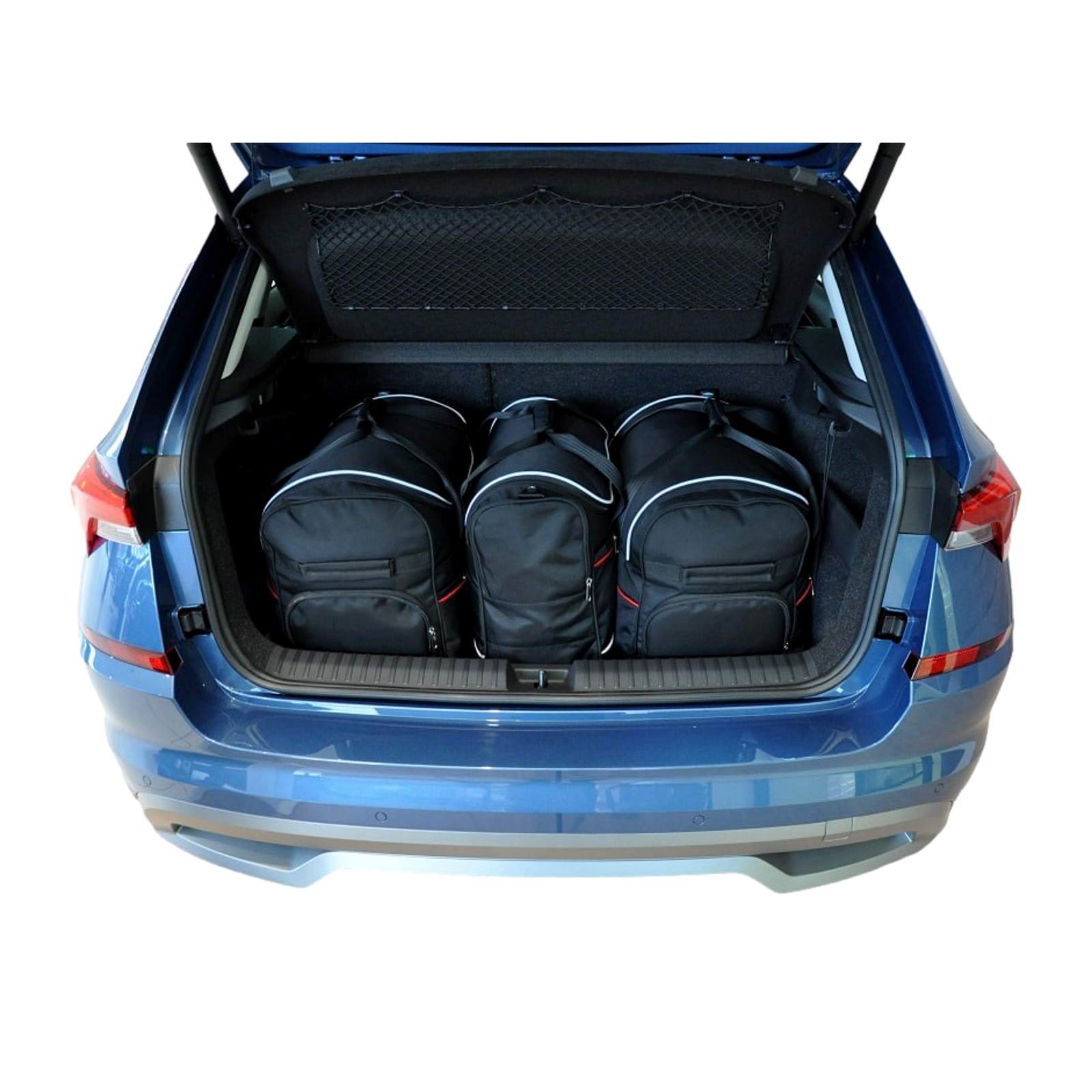 Fahrzeugspezifische Kofferraumtaschen-Sets – passend zu Ihrem SKODA KAMIQ Nutzen Sie das Platzangebot Ihres Kofferraums maximal aus! Unsere KJUST Taschensets sind exakt auf den Kofferraum des SKODA KAMIQ angepasst – für optimale Raumnutzung, sicheren Transport und perfekte Ordnung. Mit ihren unterschiedlichen Größen- und Formaten sind sie speziell konzipiert für alle, die einen aktiven Lebensstil lieben und Wert auf Qualität legen – ob im Fitnessstudio, beim Outdoor-Wochenende oder im Urlaub. Alle enthaltenen Taschen begeistern mit dem gleichen eleganten, zeitlosen Design. Die KJUST Rollen-Reisetasche überzeugt als hochwertige und vielseitige Reisetasche mit der klug durchdachten Form, seinem modernen Design, dem strapazierfähigen Material und seiner Detailgestaltung. Mit seinen langlebigen Rollen und dem ergonomischen Teleskopgriff ermöglicht der KJUST Rollen-Reisetasche eine bequeme Fortbewegung auf allen Arten von Oberflächen. Sie können die Rollen-Reisetasche ohne großen Kraftaufwand mühelos neben sich herziehen und dank des stabilen Tragegriffs auch bequem tragen, wenn es erforderlich ist. Die Sporttasche von KJUST ist mit einem verstellbaren Schultergurt und gepolsterten Tragegriffen ausgestattet, um Ihnen einen komfortablen Transport zu ermöglichen. Auf diese Weise können Sie die Tasche auch im vollgefüllten Zustand bequem über der Schulter tragen oder in der Hand halten. Mit einem großzügigen Hauptfach bietet die Tasche ausreichend Platz für Sportkleidung, Handtücher und andere Sport-Utensilien. Dank praktischer Innen- und Außentaschen können Sie auch kleinere Gegenstände geordnet verstauen. Die klug durchdachte Tasche verfügt zudem über ein separates Fach für Schuhe oder schmutzige Kleidung. Die KJUST Taschen überzeugen nicht nur durch ihre Funktionalität, sondern auch durch ihr ansprechendes Design. Bestellen Sie jetzt und genießen Sie Vorteile eines perfekt aufeinander abgestimmten Sets für Ihren SKODA KAMIQ.