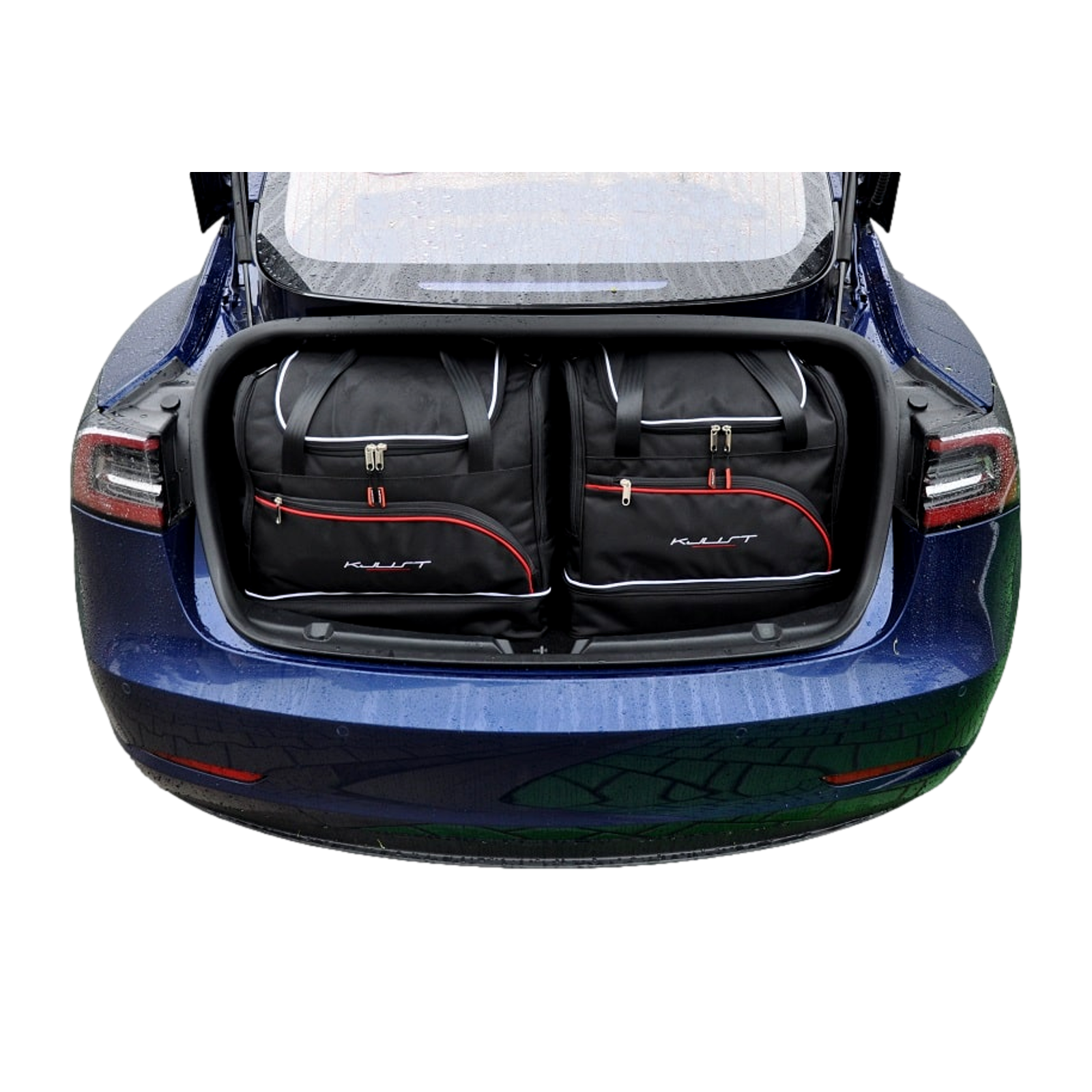 Fahrzeugspezifische Kofferraumtaschen-Sets – passend zu Ihrem TESLA MODEL 3 Nutzen Sie das Platzangebot Ihres Kofferraums maximal aus! Unsere KJUST Taschensets sind exakt auf den Kofferraum des TESLA MODEL 3 angepasst – für optimale Raumnutzung, sicheren Transport und perfekte Ordnung. Mit ihren unterschiedlichen Größen- und Formaten sind sie speziell konzipiert für alle, die einen aktiven Lebensstil lieben und Wert auf Qualität legen – ob im Fitnessstudio, beim Outdoor-Wochenende oder im Urlaub. Alle enthaltenen Taschen begeistern mit dem gleichen eleganten, zeitlosen Design. Die KJUST Rollen-Reisetasche überzeugt als hochwertige und vielseitige Reisetasche mit der klug durchdachten Form, seinem modernen Design, dem strapazierfähigen Material und seiner Detailgestaltung. Mit seinen langlebigen Rollen und dem ergonomischen Teleskopgriff ermöglicht der KJUST Rollen-Reisetasche eine bequeme Fortbewegung auf allen Arten von Oberflächen. Sie können die Rollen-Reisetasche ohne großen Kraftaufwand mühelos neben sich herziehen und dank des stabilen Tragegriffs auch bequem tragen, wenn es erforderlich ist. Die Sporttasche von KJUST ist mit einem verstellbaren Schultergurt und gepolsterten Tragegriffen ausgestattet, um Ihnen einen komfortablen Transport zu ermöglichen. Auf diese Weise können Sie die Tasche auch im vollgefüllten Zustand bequem über der Schulter tragen oder in der Hand halten. Mit einem großzügigen Hauptfach bietet die Tasche ausreichend Platz für Sportkleidung, Handtücher und andere Sport-Utensilien. Dank praktischer Innen- und Außentaschen können Sie auch kleinere Gegenstände geordnet verstauen. Die klug durchdachte Tasche verfügt zudem über ein separates Fach für Schuhe oder schmutzige Kleidung. Die KJUST Taschen überzeugen nicht nur durch ihre Funktionalität, sondern auch durch ihr ansprechendes Design. Bestellen Sie jetzt und genießen Sie Vorteile eines perfekt aufeinander abgestimmten Sets für Ihren TESLA MODEL 3.