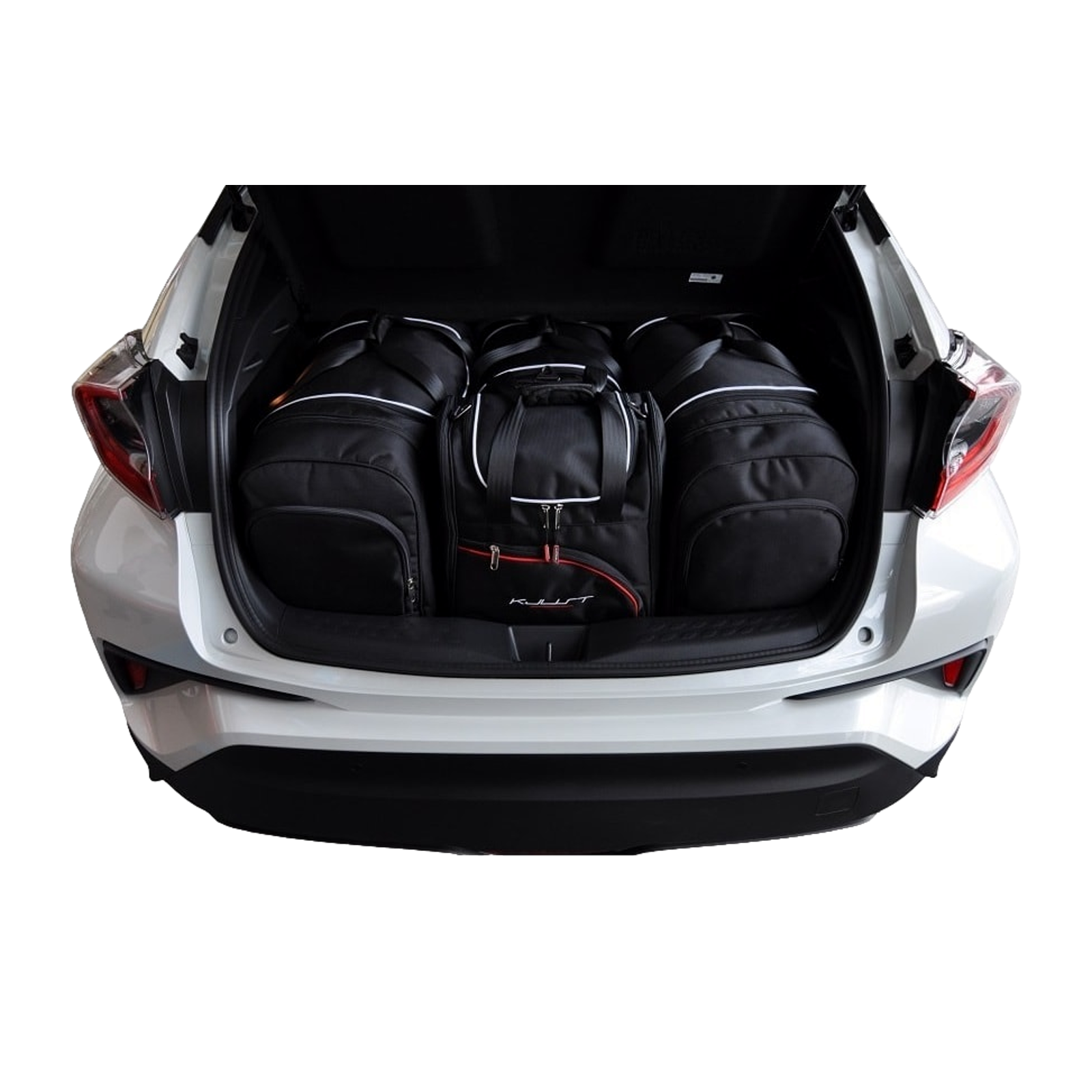Fahrzeugspezifische Kofferraumtaschen-Sets – passend zu Ihrem TOYOTA C-HR Nutzen Sie das Platzangebot Ihres Kofferraums maximal aus! Unsere KJUST Taschensets sind exakt auf den Kofferraum des TOYOTA C-HR angepasst – für optimale Raumnutzung, sicheren Transport und perfekte Ordnung. Mit ihren unterschiedlichen Größen- und Formaten sind sie speziell konzipiert für alle, die einen aktiven Lebensstil lieben und Wert auf Qualität legen – ob im Fitnessstudio, beim Outdoor-Wochenende oder im Urlaub. Alle enthaltenen Taschen begeistern mit dem gleichen eleganten, zeitlosen Design. Die KJUST Rollen-Reisetasche überzeugt als hochwertige und vielseitige Reisetasche mit der klug durchdachten Form, seinem modernen Design, dem strapazierfähigen Material und seiner Detailgestaltung. Mit seinen langlebigen Rollen und dem ergonomischen Teleskopgriff ermöglicht der KJUST Rollen-Reisetasche eine bequeme Fortbewegung auf allen Arten von Oberflächen. Sie können die Rollen-Reisetasche ohne großen Kraftaufwand mühelos neben sich herziehen und dank des stabilen Tragegriffs auch bequem tragen, wenn es erforderlich ist. Die Sporttasche von KJUST ist mit einem verstellbaren Schultergurt und gepolsterten Tragegriffen ausgestattet, um Ihnen einen komfortablen Transport zu ermöglichen. Auf diese Weise können Sie die Tasche auch im vollgefüllten Zustand bequem über der Schulter tragen oder in der Hand halten. Mit einem großzügigen Hauptfach bietet die Tasche ausreichend Platz für Sportkleidung, Handtücher und andere Sport-Utensilien. Dank praktischer Innen- und Außentaschen können Sie auch kleinere Gegenstände geordnet verstauen. Die klug durchdachte Tasche verfügt zudem über ein separates Fach für Schuhe oder schmutzige Kleidung. Die KJUST Taschen überzeugen nicht nur durch ihre Funktionalität, sondern auch durch ihr ansprechendes Design. Bestellen Sie jetzt und genießen Sie Vorteile eines perfekt aufeinander abgestimmten Sets für Ihren TOYOTA C-HR.