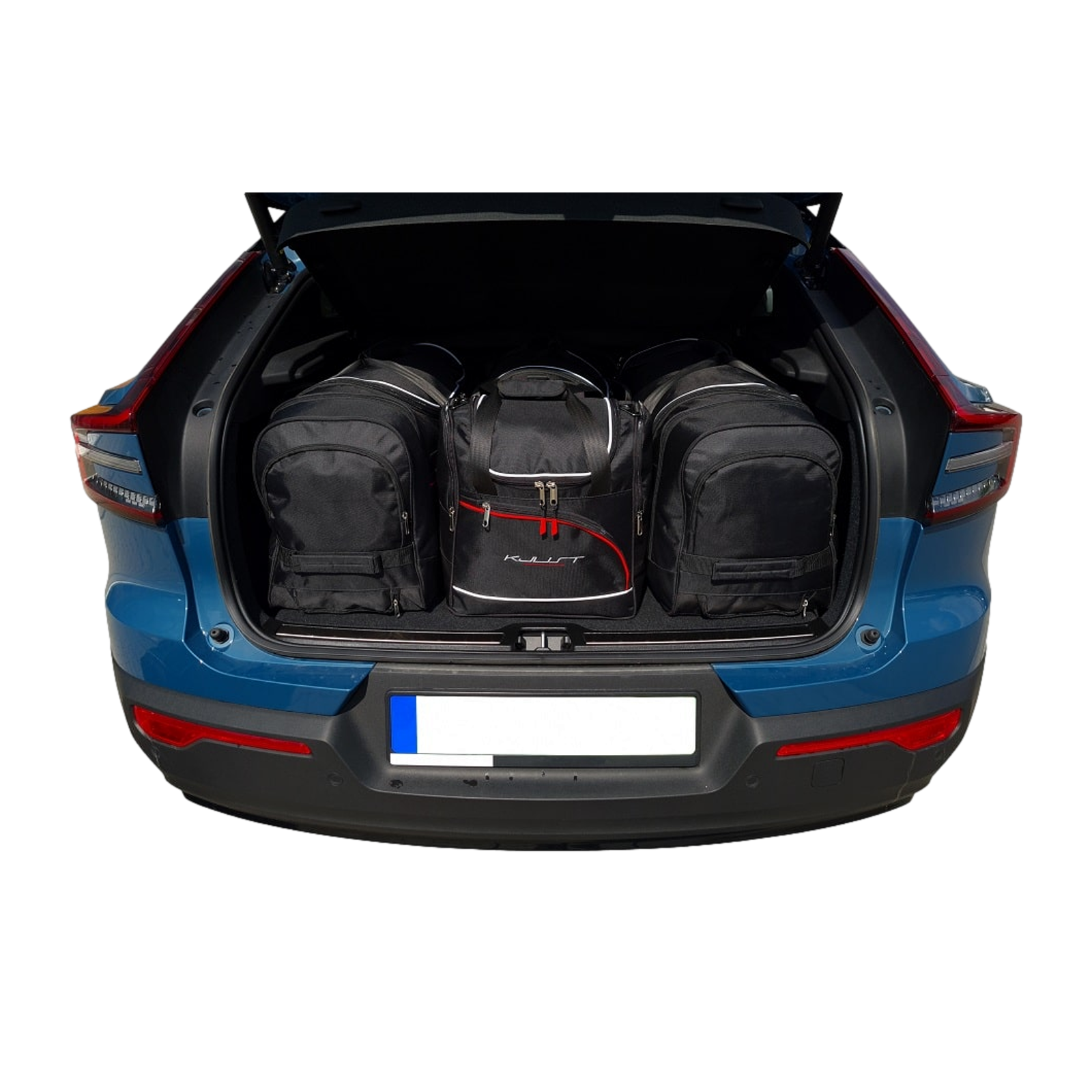 Fahrzeugspezifische Kofferraumtaschen-Sets – passend zu Ihrem VOLVO C40 Nutzen Sie das Platzangebot Ihres Kofferraums maximal aus! Unsere KJUST Taschensets sind exakt auf den Kofferraum des VOLVO C40 angepasst – für optimale Raumnutzung, sicheren Transport und perfekte Ordnung. Mit ihren unterschiedlichen Größen- und Formaten sind sie speziell konzipiert für alle, die einen aktiven Lebensstil lieben und Wert auf Qualität legen – ob im Fitnessstudio, beim Outdoor-Wochenende oder im Urlaub. Alle enthaltenen Taschen begeistern mit dem gleichen eleganten, zeitlosen Design. Die KJUST Rollen-Reisetasche überzeugt als hochwertige und vielseitige Reisetasche mit der klug durchdachten Form, seinem modernen Design, dem strapazierfähigen Material und seiner Detailgestaltung. Mit seinen langlebigen Rollen und dem ergonomischen Teleskopgriff ermöglicht der KJUST Rollen-Reisetasche eine bequeme Fortbewegung auf allen Arten von Oberflächen. Sie können die Rollen-Reisetasche ohne großen Kraftaufwand mühelos neben sich herziehen und dank des stabilen Tragegriffs auch bequem tragen, wenn es erforderlich ist. Die KJUST Flugzeugtasche ist eine erstklassige Wahl für alle, die viel reisen und Wert auf Komfort, Stil und Funktionalität legen. Sie ist speziell für den Einsatz in Flugzeugkabinen entwickelt und erfüllt mit ihrer hochwertigen Verarbeitung, den standardisierten Größen und der praktischen Fächeraufteilung alle Anforderungen an eine moderne Reisetasche. Die Tasche bietet mit ihrem geräumigen Hauptfach ausreichend Platz für Ihre persönlichen Gegenstände. Ein Extrafach fürs Notebook macht sie businesstauglich. Zudem verfügt sie über mehrere kleinere Fächer für wichtige Utensilien wie Dokumente, Geldbörsen, Schlüssel und andere Kleinigkeiten. Die KJUST Flugzeugtasche wurde mit Blick auf den modernen Reisenden entworfen. Sie verfügt über einen speziellen Trolley-Riemen, der das einfache und bequeme Befestigen an einem Trolley-Griff ermöglicht. So haben Sie Ihre Tasche immer griffbereit und müssen sie nicht tragen, wenn Sie längere Strecken zurücklegen. Darüber hinaus ist die Tasche mit einem abnehmbaren Schultergurt ausgestattet, der Ihnen verschiedene Tragemöglichkeiten bietet. Die Sporttasche von KJUST ist mit einem verstellbaren Schultergurt und gepolsterten Tragegriffen ausgestattet, um Ihnen einen komfortablen Transport zu ermöglichen. Auf diese Weise können Sie die Tasche auch im vollgefüllten Zustand bequem über der Schulter tragen oder in der Hand halten. Mit einem großzügigen Hauptfach bietet die Tasche ausreichend Platz für Sportkleidung, Handtücher und andere Sport-Utensilien. Dank praktischer Innen- und Außentaschen können Sie auch kleinere Gegenstände geordnet verstauen. Die klug durchdachte Tasche verfügt zudem über ein separates Fach für Schuhe oder schmutzige Kleidung. Die KJUST Taschen überzeugen nicht nur durch ihre Funktionalität, sondern auch durch ihr ansprechendes Design. Bestellen Sie jetzt und genießen Sie Vorteile eines perfekt aufeinander abgestimmten Sets für Ihren VOLVO C40.