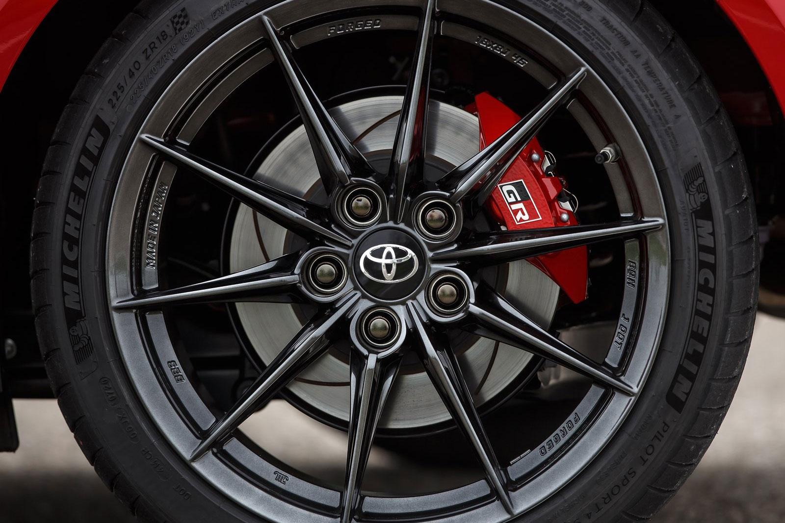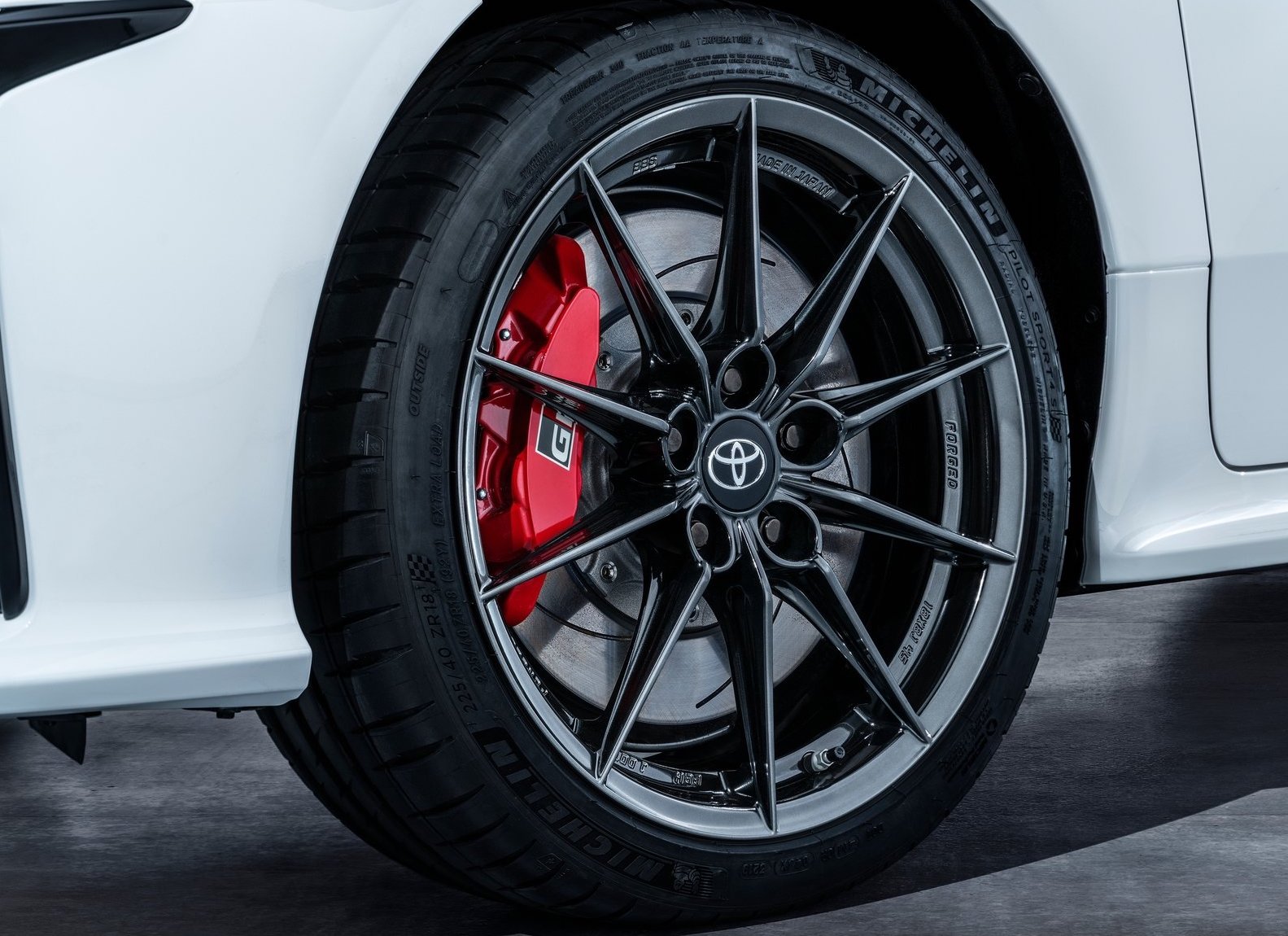 Lebendig ist auch der Allrad, Toyota nennt ihn GR Four, denn er ist voll flexible: die Momentenverteilung kann von reinem Frontantrieb 100:0 bis zu reinem Heckantrieb 0:100 verschoben werden. Das Ganze über eine variable Sperre, die im Normal-Modus 40:60 verteilt, im Sport-Modus der Hinterachse etwas mehr Saft gewährt, nämlich 30:70 und im Track-Modus paritätisch 50:50 verteilt. Wer trotz 225/40er 18-Zoll Bereifung noch Angst um Traktion hat, der sei das optionale Circuit-Pack empfohlen: hier gibt es neben Schmiedefelgen und extra klebrigen Michelins noch zwei Torsen-Sperren für die Achsdifferenziale – yay!