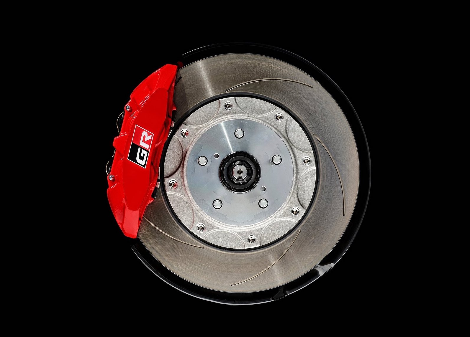 Das Fahrwerk an sich ist relativ klassisch, der Toyota GR Yaris kommt zwar mit speziell abgestimmten Federraten und extra knackigen Dämpfern, in der Serie wird es aber ganz konventionell passiv gedämpft und auch ohne Einstellmöglichkeiten bleiben. Bei der Kinematik hat sich aber doch einiges getan, denn so ist die Plattform des Rallye-Ablegers ein Zwitter: Vorne die bekannte TNGA-B-Plattform des Yaris, hinten die TNGA-C-Plattform der großen Brüder. Nötig war das vor allem um die Verbundlenkerachse loszuwerden und Raum für eine Doppelquerlenker-Lösung zu bekommen. Gebremst wird vorne mit 365-Millimeter-Scheiben an Vier-Kolben-Bremssätteln, hinten mit 297-Millimeter-Scheiben an Zwei-Kolben-Sätteln.