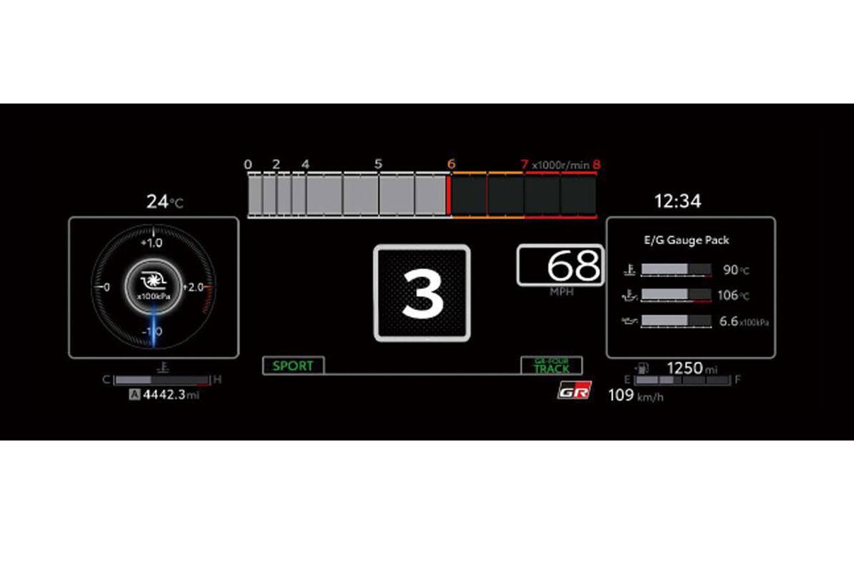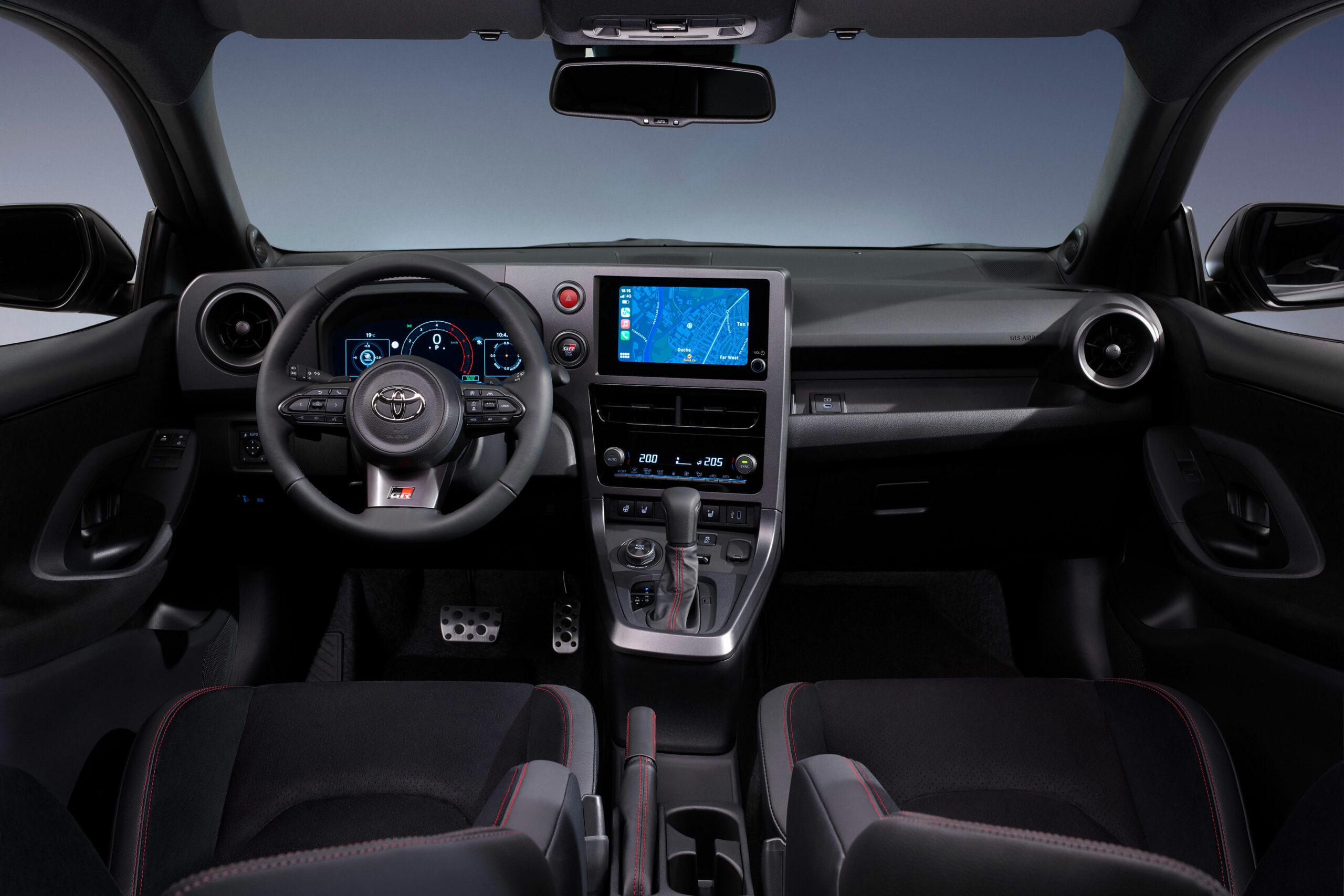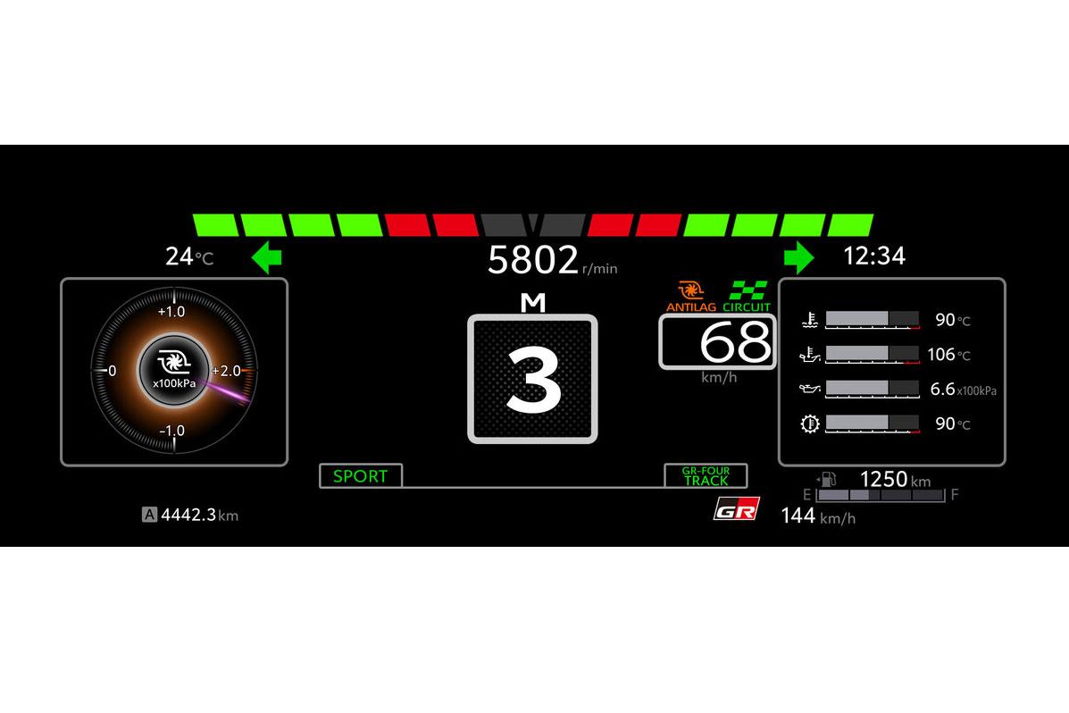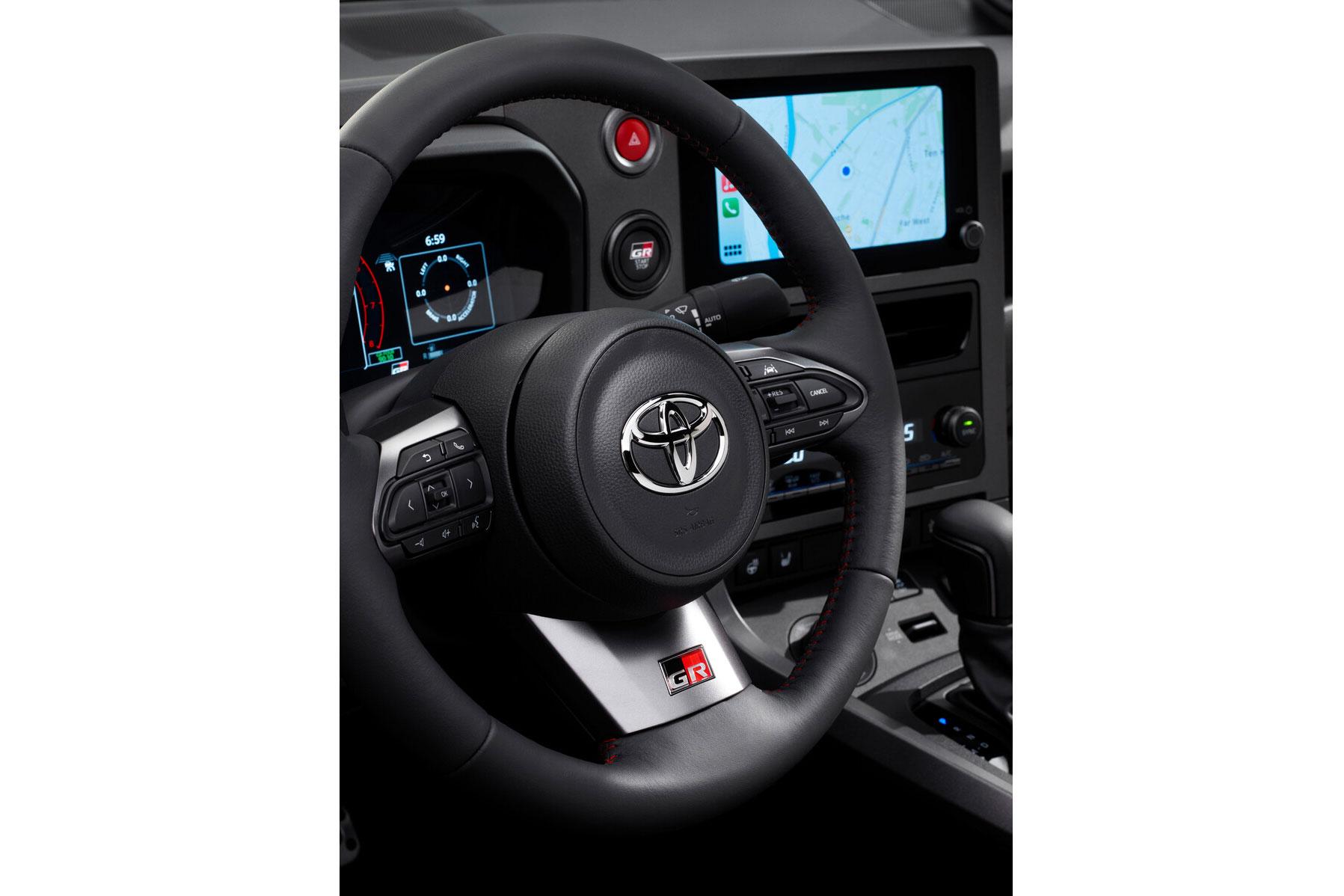 Im Cockpit geben neu angeordnete Bedienelemente das 2024er Modell zu erkennen und bieten einen schnelleren und klareren Zugriff. Funktionen, die im Rennsport häufig benötigt werden, wie z. B. Ladeluftkühler-Spray, VSC-OFF und Warnblinker rückten näher an den Fahrer, so dass sie auch mit einem Renngurt schnell und einfach erreicht werden können. Auf der Beifahrerseite wurde die Ablage in der Instrumententafel vergrößert, um Platz für zusätzliche Messgeräte oder einen Monitor für den Beifahrer zu schaffen.