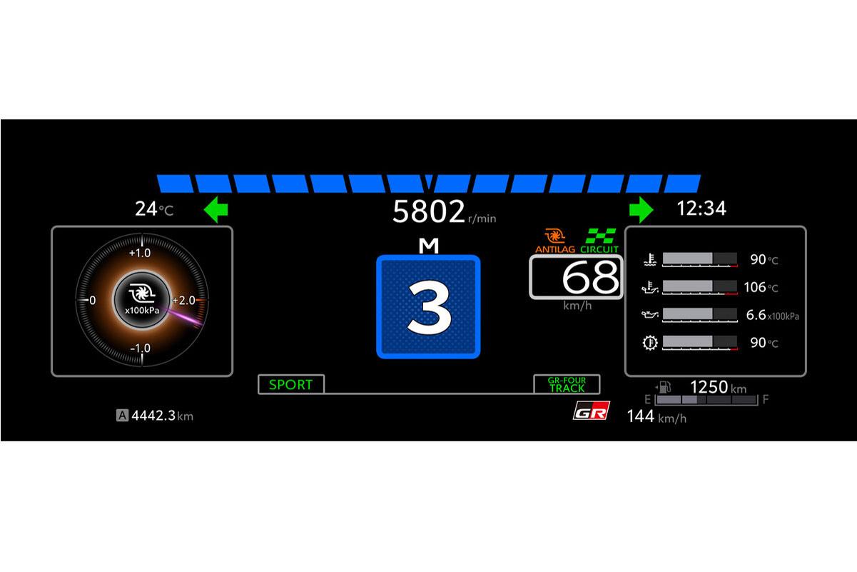 Das neue volldigitale 12,3-Zoll-Kombiinstrument bietet die beiden Layout-Modi Normal und Sport – letzterer mit einer auf die sportliche Performance ausgerichteten Anzeige. Das Design verzichtet auf überflüssige Verzierungen und sorgt mit klaren Grafiken dafür, dass die Informationen sofort erkannt und verstanden werden können. Bei der Automatikvariante gibt es zusätzlich eine Anzeige für die Getriebeöltemperatur sowie eine optische Warnung und einen akustischen Alarm, der den Fahrer darauf aufmerksam macht, wenn die Motordrehzahl zu hoch ist, um herunterzuschalten.