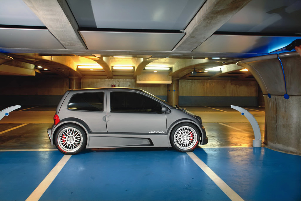 Doch selbst mit dem so gewonnenen Platz war noch einiges an Karosseriearbeiten nötig – und trotzdem scheint auch danach nicht alles reingepasst zu haben. Denn während die Räder früher innerhalb des Radkastens platziert waren, wurden sie nach dem Umbau kurzerhand draußen aufgesetzt. Das sah im Entwicklungsstadium zwar noch einigermaßen ulkig aus, wirkt jetzt jedoch dank eines aus Frontschürze, Seitenleisten im Baumstammformat und Heckschürze mit Diffusor bestehenden Bodykits mehr als beeindruckend.