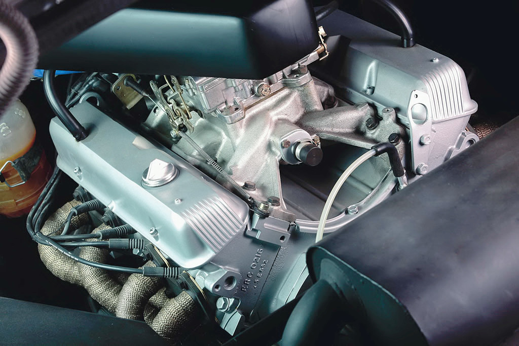 Für Vortrieb sorgt ein 180 PS starker Achtzylinder aus dem Hause Range-Rover. Der gibt seine Leistung über eine Fünfgang-Handschaltung an die Hinterräder weiter, die die Achtzylinder-Power ihrerseits über 320er-Slicks von Yokohama auf den Asphalt bringen. An der Vorderachse kommen hingegen „nur“ 230er-Gummis zum Einsatz.