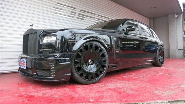 {werbung}Ok ok, Office-K ist kein Tuner der eigene Produkte entwickelt und anbietet, doch auch die Kombination bereits auf dem Markt erhältlicher Teile will gelernt sein. Im Fall dieses hier zu sehenden Rolls Royce Phantom haben die Jungs aus Japan ein Bodykit von Wald International mit Namen Black Bison montiert, eine neue Abgasanlage verbaut, das gewaltige Schlachtross zudem etwas tiefergelegt und abschließend riesige 24-Zoll-Alus aufgezogen. In der Summe wirkt der britische Trumm nun noch monströser und wuchtiger, das Ziel des Tunings dürfte also voll getroffen sein.