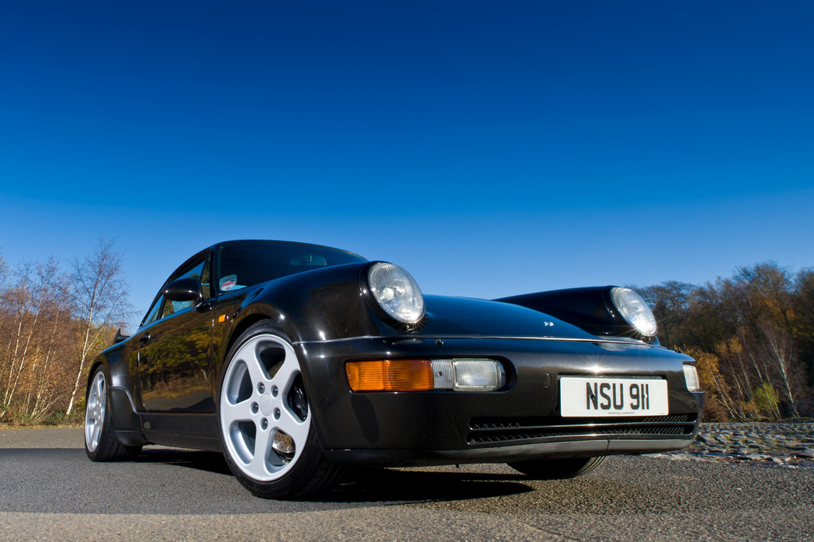 Für Laien steht hier vielleicht ein normaler Neunhundertelf. Nicht mehr das neueste Modell, der voluminöse Heckspoiler deutet eher auf ein Kind der späten Achtziger hin. Dass das Zuffenhausener-Wappen zugunsten eines anderen Firmenlogos weichen musste – geschenkt.
