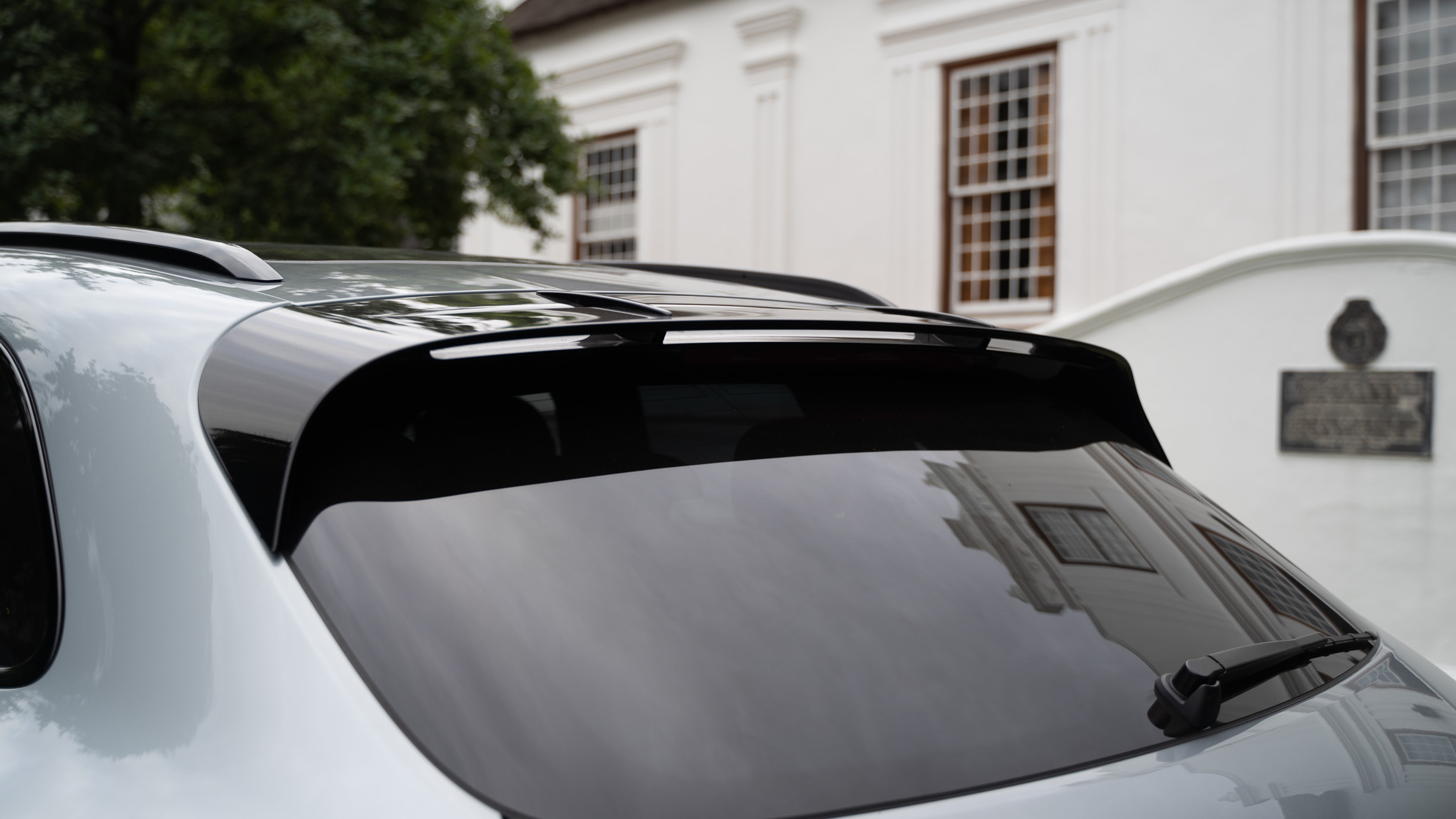 Ein Turbo war und ist das was geht. Die Latte, die Du nur erreichst wenn Du es ganz nach oben schaffst. Wenn Du es nicht bringst – sorry. Natürlich hat turbo immer auch etwas mit Prestige zu tun. Das Beste, das Teuerste, das Unereichbare. Allein muss der Macan turbo gute 35.000 EUR auf den Macan S im Grundpreis drauflegen, auch wenn das selbst die sehr gute Ausstattung nicht im Ansatz rechtfertigt. Es zieren ihn exklusive optische Details, die seine Vorherrschaft unter den schwachen Brüdern auch für Unbedarfte auf den ersten Blick als Häuptling erkennen lassen. Das böse blitzende Tagfahrlicht in mitten der mächtigen Lufteinlässe an der Front etwa. Vielmehr aber noch der Heckspoiler mit dem selbstbewussten Doppelflügelprofil.