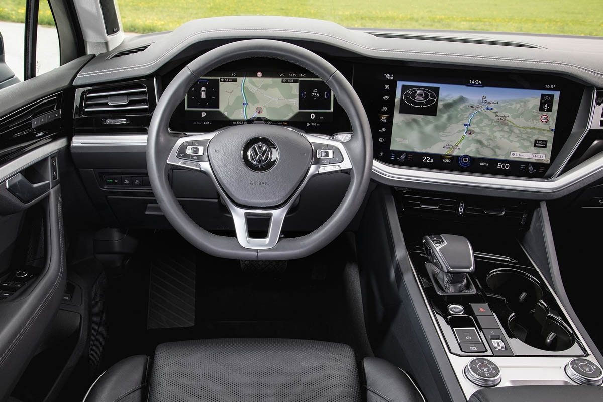 Das optionale Adaptivfahrwerk samt Luftfederung und aktiver Wankstabilisierung sorgt auf Autobahnen und auf teils schlechteren Landstraßen für einen fürstlichen Fahrkomfort. Hinzu kommt, dass Volkswagen endlich die Programmierung der ZF-8-Gang-Automatik optimiert hat. Dies hat zur Folge, dass der Wandler bei höheren Geschwindigkeiten nicht ständig zwischen dem siebten und achten Gang hin- und herschaltet. Die elektromechanische Lenkung ist passend komfortabel ausgelegt – nur sportive Fahrer werden (selbst im Dynamikmodus) etwas das Gewicht vermissen.