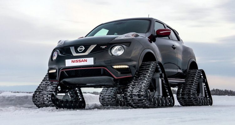 Zugegeben, der Nissan Juke Nismo RSnow ist bei weiten nicht so eindrucksvoll wie der Raptortrax von Ken Block, aber eine coole Idee ist es allemal, dem kleinen Allradler ein Kettenlaufwerk der US-Firma American Track Truck unterzuschnallen. Nun darf der mit jeder Menge Bodenfreiheit gesegnete Super-Juke mit dem 218 PS starken 1,6-Liter-Turbo unter der Haube mal so richtig im Schnee spielen. Neben dem Umbausatz, der für fast alle Allradmodelle zu haben ist und 9.000 Dollar kostet, musste beim kompakten Nissan aber noch etwas Feinarbeit an der Karosserie sowie an der Steuerung des Allradantriebs vorgenommen werden.
