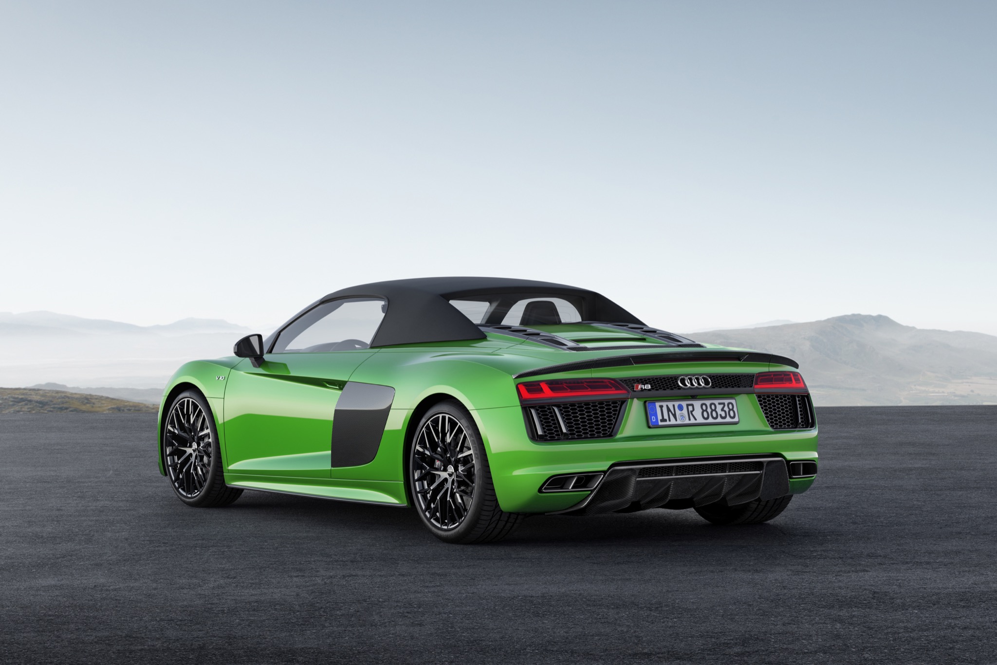 Zwei Premieren gibt es für Audi darüber hinaus zu feiern: der R8 Spyder V10 plus ist das stärkste offene Audi-Serienmodell, das je die Werkshallen verlassen hat. Und: mit seiner Einführung durchbricht Audi beim Grundpreis die 200.000 Euro-Schallmauer. Dieser beträgt in Deutschland 207.500 Euro und damit 17.500 Euro mehr als für das plus-Coupé. Darin noch nicht enthalten ist das optionale Designpaket micrommatagrün Audi exclusive (Fotofahrzeug) – für alle, die es noch etwas außergewöhnlicher mögen. Dann ist der offene V10 im extrovertierten Grün lackiert, Singleframe und Abgasanlage hingegen schwarz. Der Innenraum mit den serienmäßigen Schalensitzen wird dann ebenso mit schwarzem Leder und grünen Ziernähten ausgestattet.
