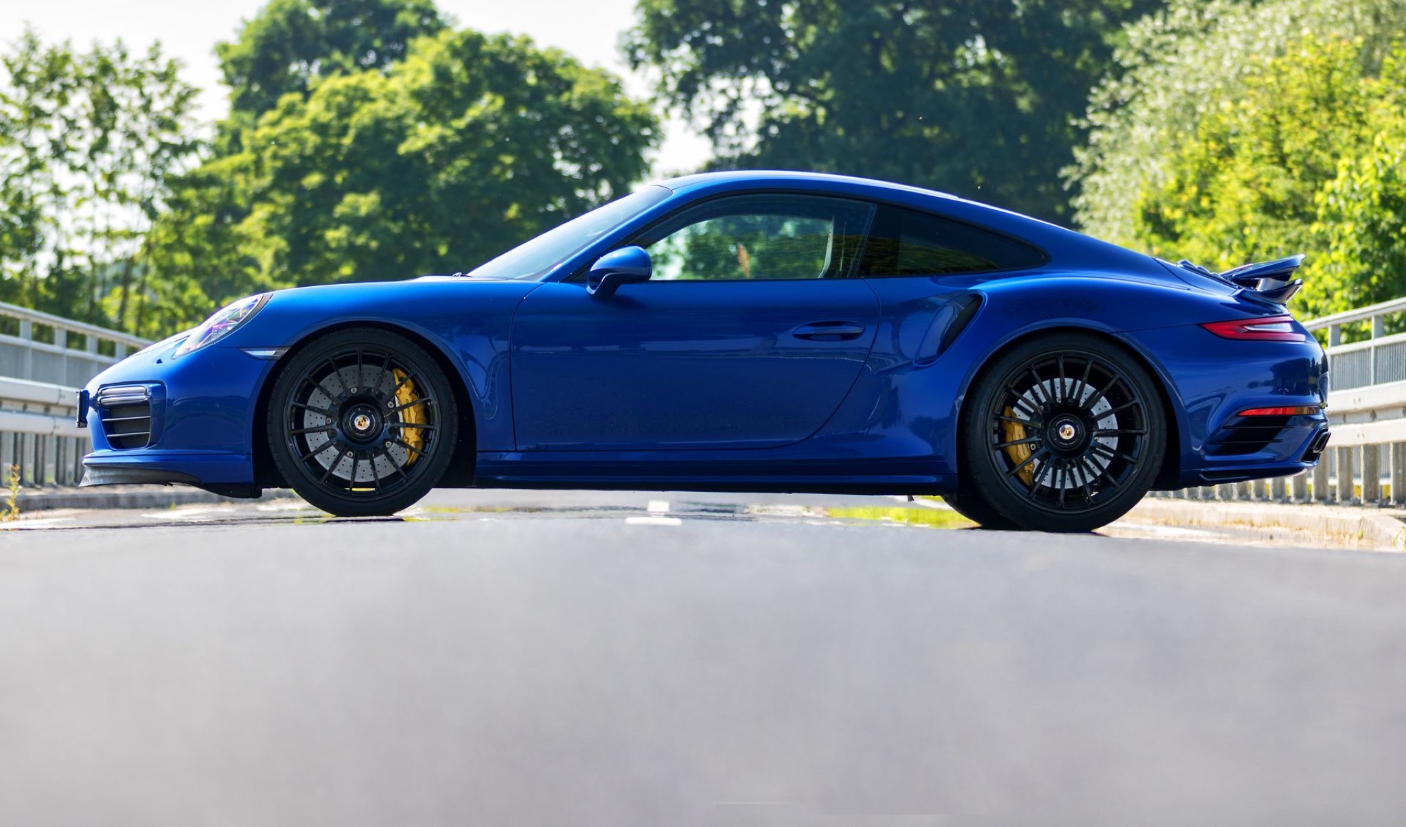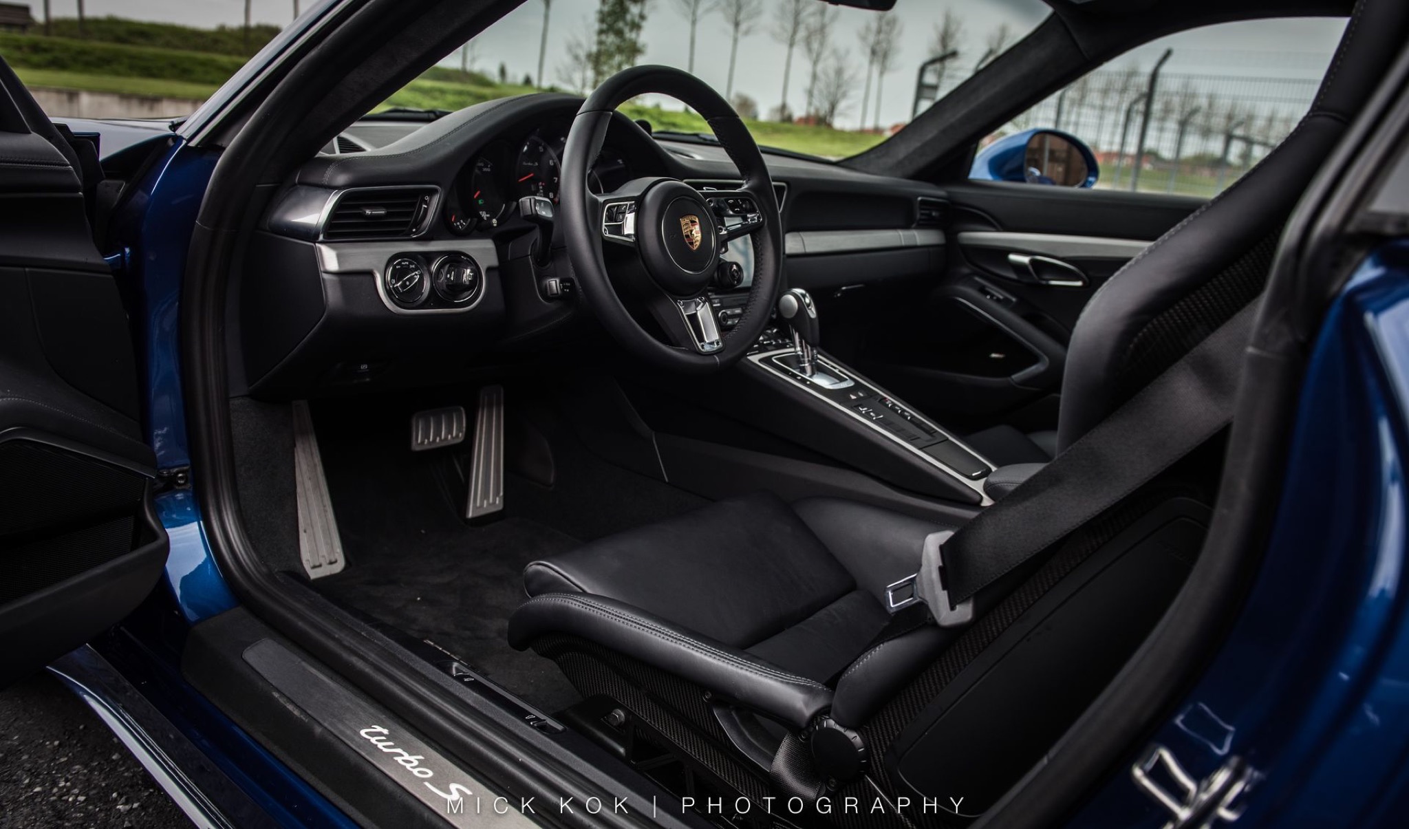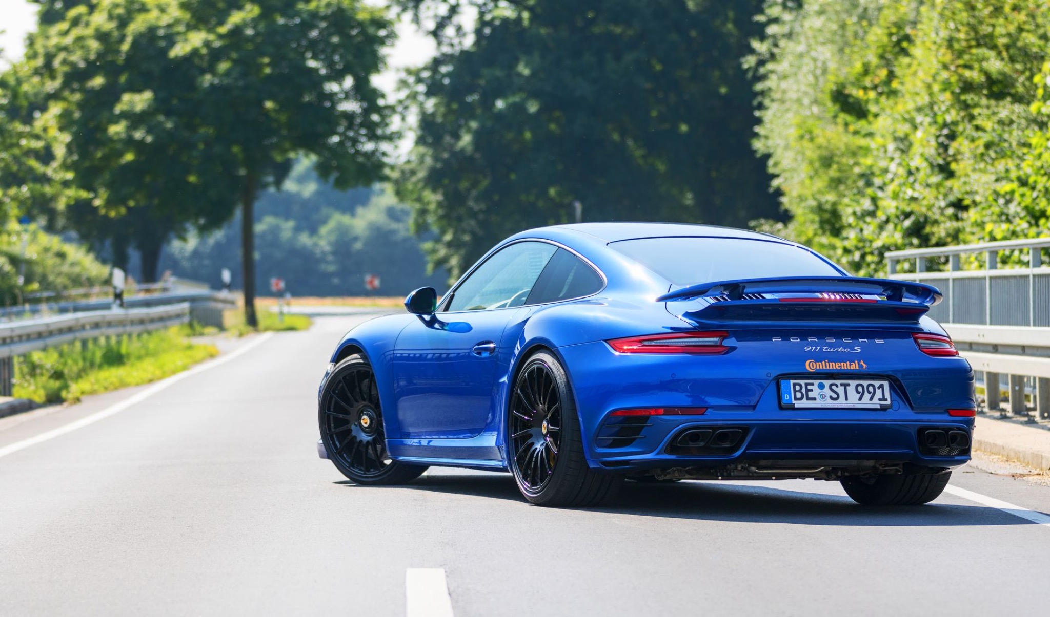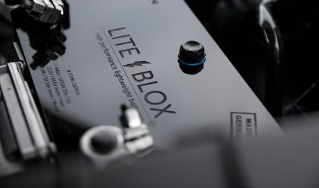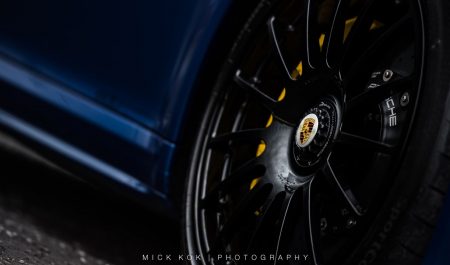 {1}Dabei sieht der „blaue Pfeil“ äußerlich so unscheinbar serienmäßig aus: die Kofferraumhaube vom GT3 RS ist aus Carbon und in Wagenfarbe lackiert und dürfte so höchstens dem Kenner auffallen. Dass die Kunststoff-Stoßfänger auf Wunsch individuell verändert werden – geschenkt. Das KW-Rennsportfahrwerk mit bis zu 30 Millimetern Tieferlegung bringt den Elfer dezent aber umso wirkungsvoller näher an die Straße, der Schmiederadsatz in 20 Zoll steht dem turbo ausgezeichnet. Selbst der neu entwickelte Endschalldämpfer aus Edelstahl fügt sich harmonisch in die seriennahe Optik ein. Die Gewichtsersparnis all dieser Maßnahmen inklusive Lite-Blox-Batterie aus Carbon? Satte 60 Kilogramm.
