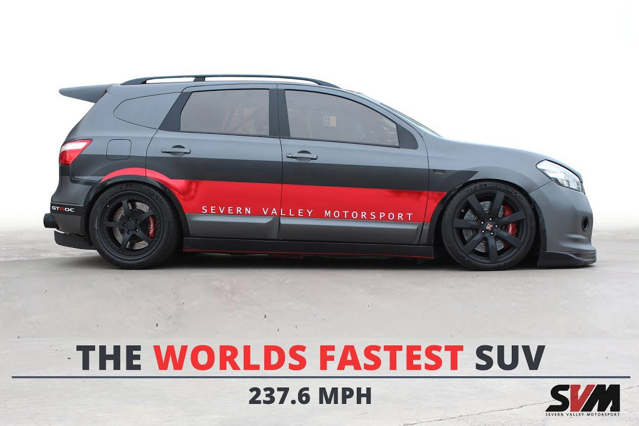 Mehr als zwei Jahre ist es her, da schickte der britische Tuner Severn Valley Motorsport (SVM) seinen Nissan Qashquai-R auf Rekordjagd. 2015 schaffte der von einem GT-R-Aggregat mit 1.100 PS befeuerte Kompakt-SUV einen Topspeed von 357 km/h. Für den Anfang schon mal nicht schlecht. Doch die Briten wollten mehr, tüftelten weiter und sahen sich spätestens nach dm Rekordlauf von Toyota zum handeln gezwungen. Immerhin schafft deren 2.000 PS starker Land Cruiser stolze 370 km/h.