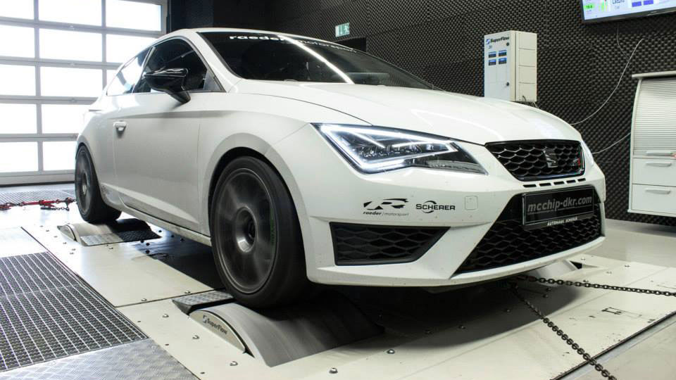 {werbung}Nachdem Tuner Tij-Power bereits mit einem 375 PS starken Seat Leon Cupra 280 vorgelegt hat, zieht nun auch Kollege Mcchip-DKR nach. Allerdings verzichtet der auf einen neuen Ladeluftkühler und eine durchsatzfreudigere Abgasanlage, spielt stattdessen nur eine neue Steuersoftware auf. Der Eingriff beschert dem 2.0 TSI unter der Haube ein Leistungsplus von 62 PS und 64 Newtonmeter, nun geht es also mit 342 PS und 444 Nm voran. Gut, dass der feurige Spanier schon serienmäßig eine Differenzielsperre verbaut hat. So dürfte die Kraft auch recht ordentlich auf die Straße zu bringen sein. Konkrete Fahrleistungen oder einen Preis für das Tuning nennt Mcchip-DKR allerdings noch nicht.