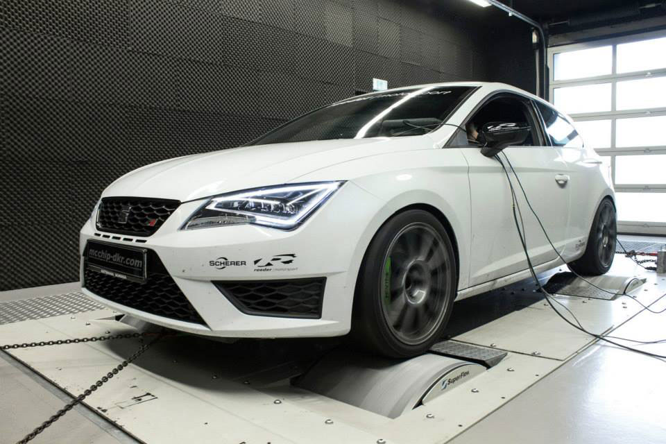 {werbung}Nachdem Tuner Tij-Power bereits mit einem 375 PS starken Seat Leon Cupra 280 vorgelegt hat, zieht nun auch Kollege Mcchip-DKR nach. Allerdings verzichtet der auf einen neuen Ladeluftkühler und eine durchsatzfreudigere Abgasanlage, spielt stattdessen nur eine neue Steuersoftware auf. Der Eingriff beschert dem 2.0 TSI unter der Haube ein Leistungsplus von 62 PS und 64 Newtonmeter, nun geht es also mit 342 PS und 444 Nm voran. Gut, dass der feurige Spanier schon serienmäßig eine Differenzielsperre verbaut hat. So dürfte die Kraft auch recht ordentlich auf die Straße zu bringen sein. Konkrete Fahrleistungen oder einen Preis für das Tuning nennt Mcchip-DKR allerdings noch nicht.