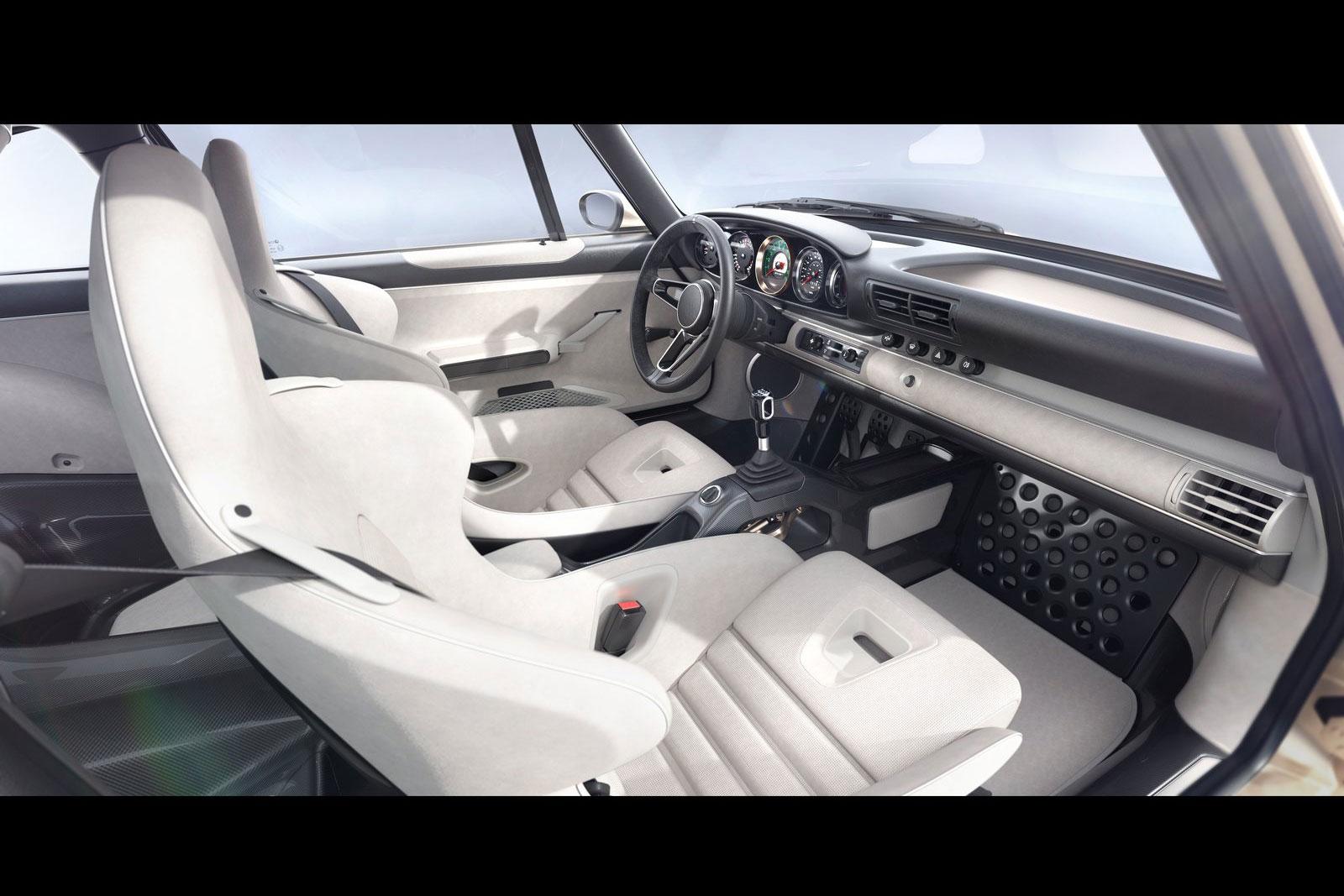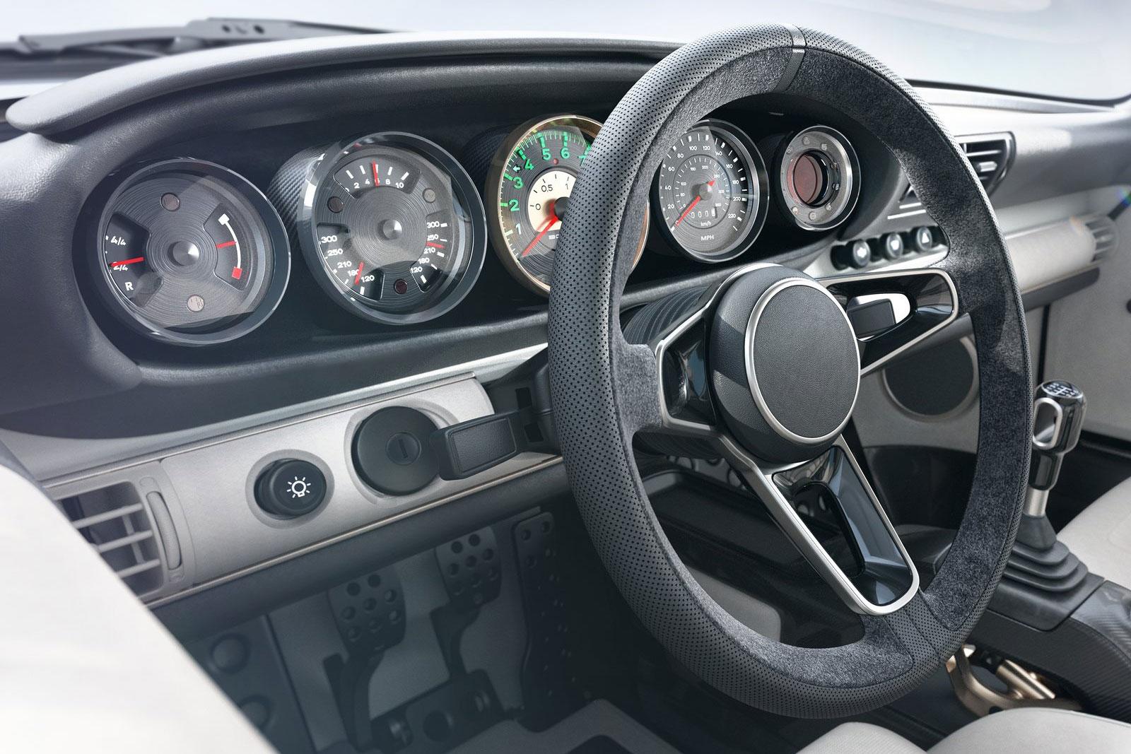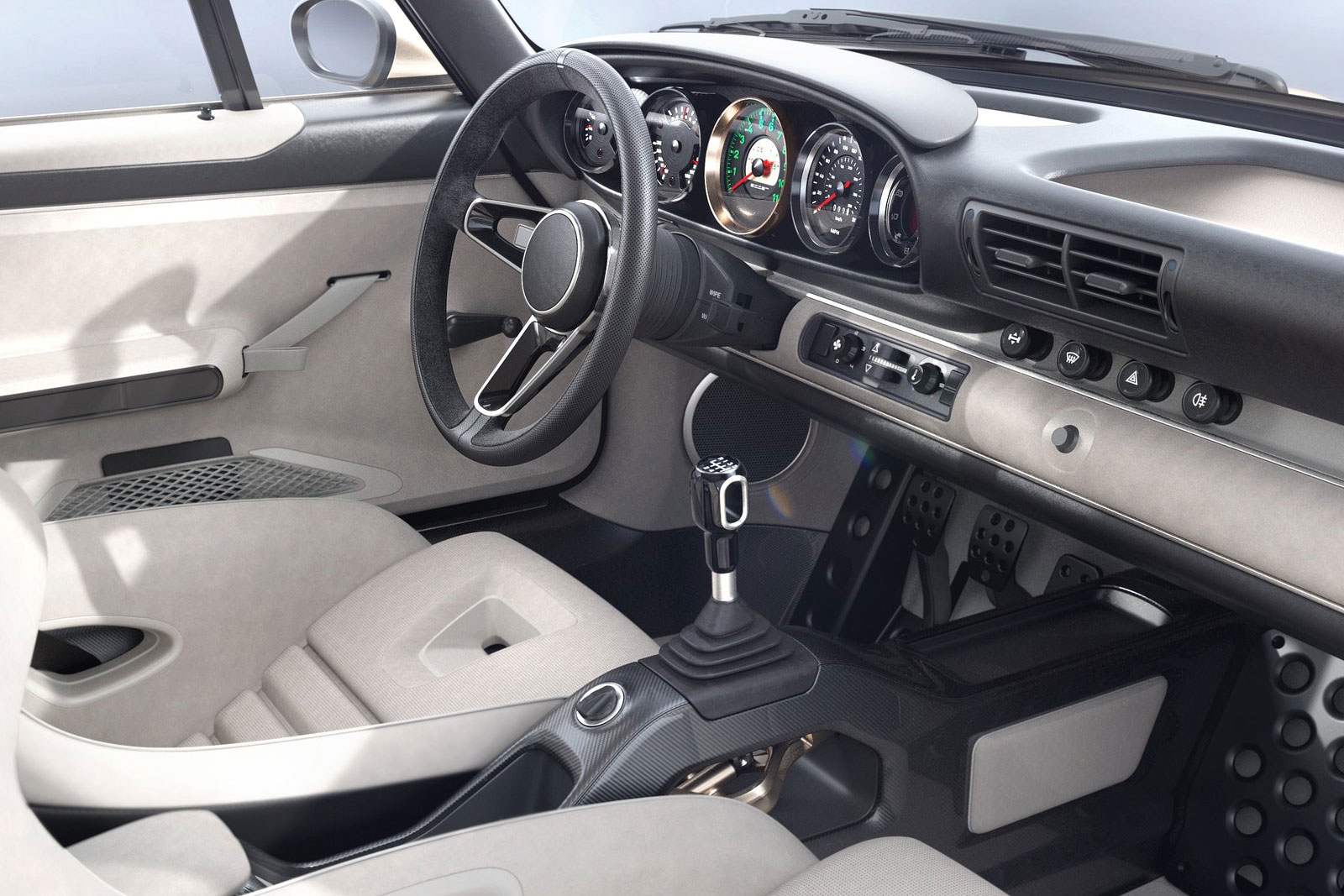 Der Innenraum spricht für sich selbst und spiegelt die Detail-Verliebtheit von wider. Sei es die edle Pedalerie, die Armarturen oder die Sitze – nicht umsonst sprechen viele Liebhaber bei den Modellen von Singer von „Kunstwerken“.