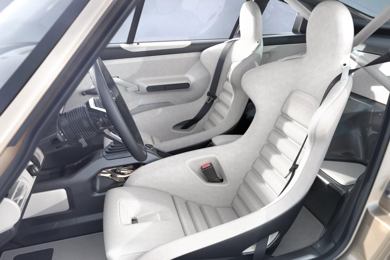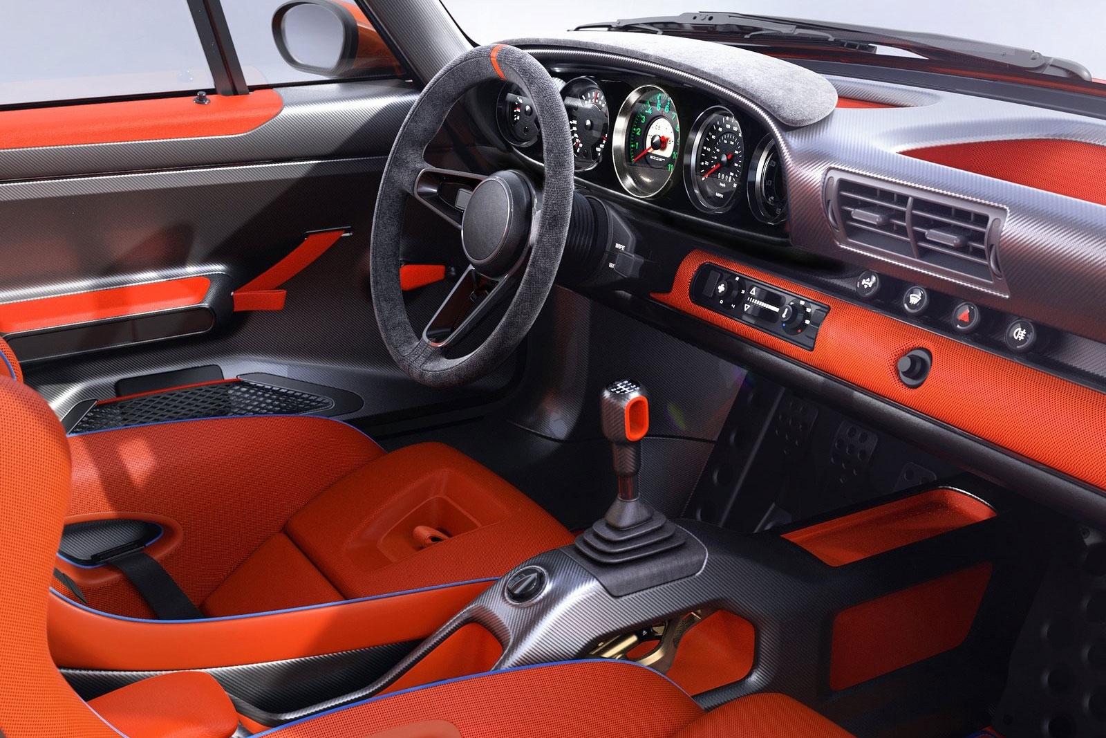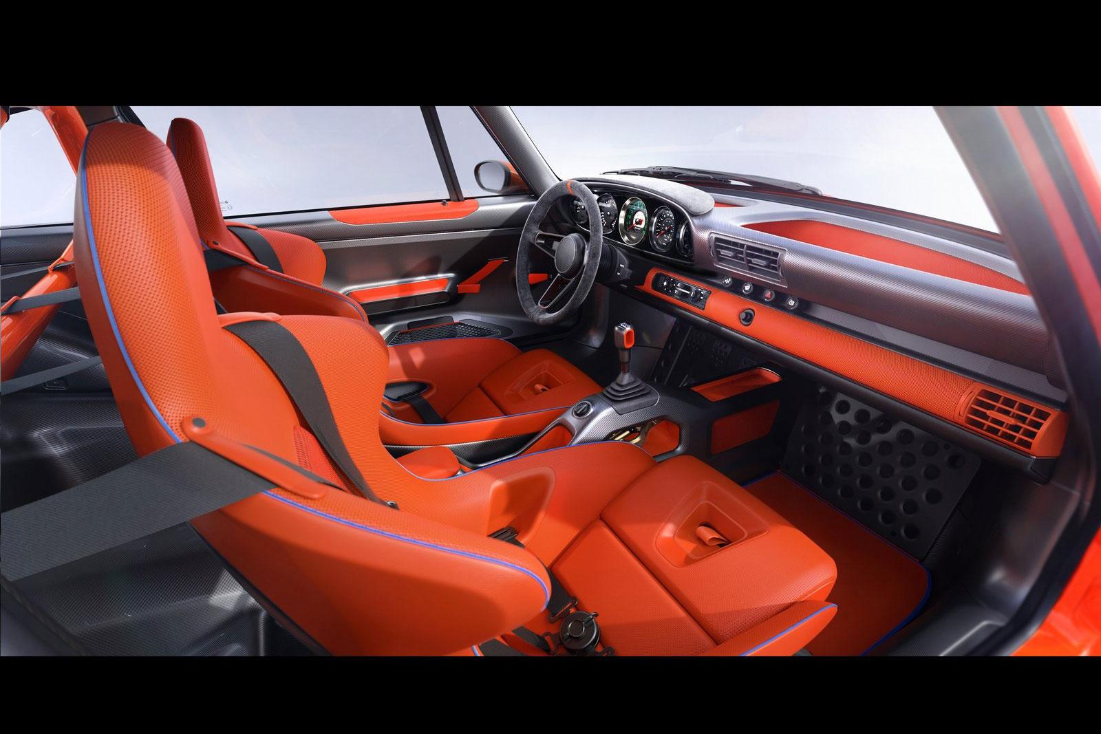 Der Innenraum spricht für sich selbst und spiegelt die Detail-Verliebtheit von wider. Sei es die edle Pedalerie, die Armarturen oder die Sitze – nicht umsonst sprechen viele Liebhaber bei den Modellen von Singer von „Kunstwerken“.