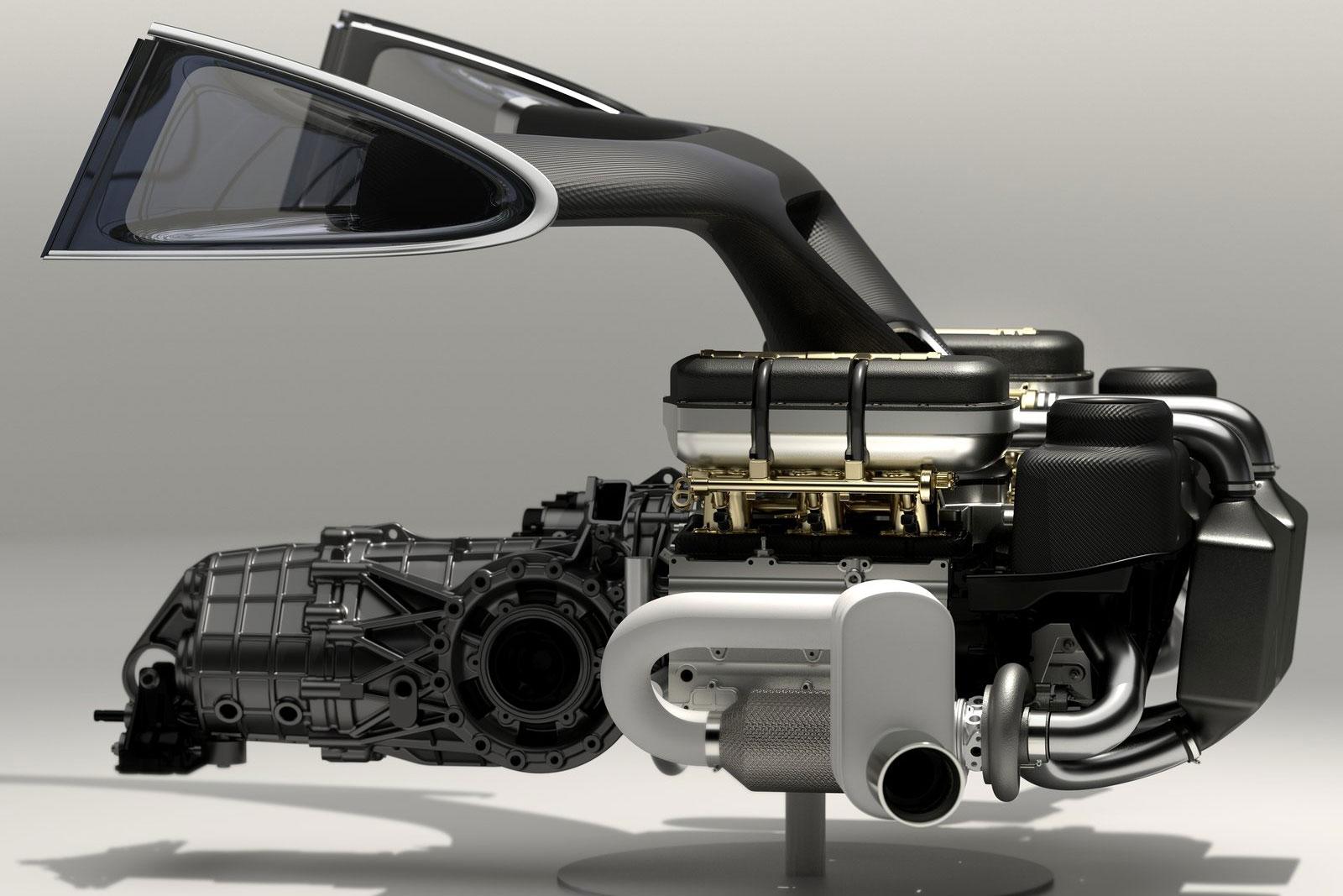 Unter der Haube schlummert ein von Singer entwickelter 3,8-Liter-Twin-Turbo-Sechszylinder mit Luft-Wasser-Ladeluftkühlung und elektrischen Wastegates. Das Aggregat bringt es auf 700 PS bei etwa 9.000 U/min. Geschaltet wird über eine manuelle Sechsgang-Box, angetrieben werden die Hinterräder. Ach ja: Gebaut werden die Motoren übrigens in England bei Nicholson McLaren Engines.