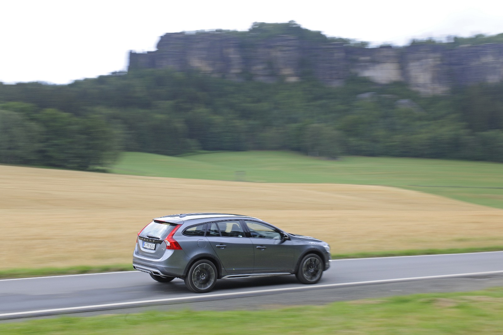 {1}Das Fehlen von zwei angetriebenen Rädern macht sich auch bei schneller Kurvenfahrt bemerkbar. Bei engagierter Fahrt fällt der große Kombi schnell in ein unmotiviertes Untersteuern. Die Lenkung ist dafür feinfühlig und macht ihre Sache gut, das Fahrwerk ist angenehm straff und die Höherlegung fällt weder durch eine erhöhte Wankneigung noch durch ein Schwimmen negativ auf. Dafür kommt sie dem Fahrkomfort zugute. Auch über unangenehme Querfugen oder Kopfsteinpflaster rollt der V60 ruhig ab und vermittelt stets ein sicheres Gefühl. So kennt man das.