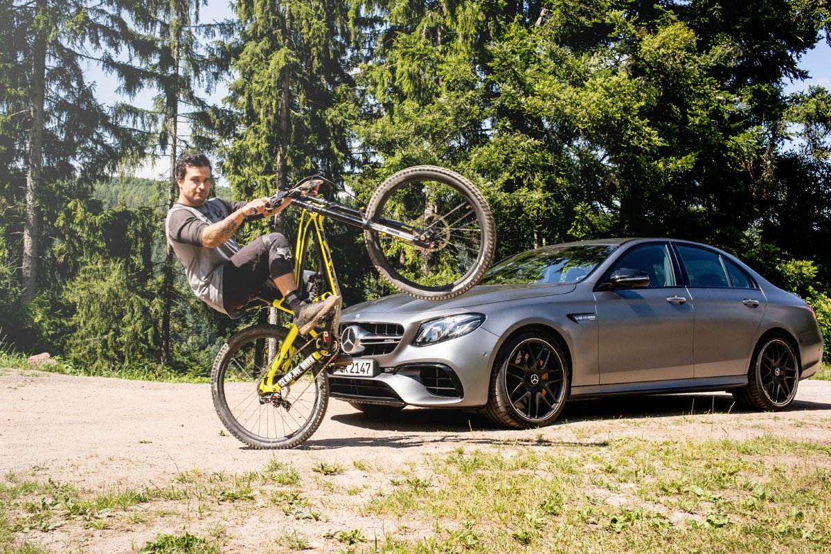 Nach ihrem Vollgas-Ritt im 612 PS starken E63 S über die Autobahn (310 km/h schafft die Power-Limo maximal) holen Matthias und Yannick Helge dann aber doch wieder ab. Selbstredend ist der Bolide bei so viel Dampf unter der Haube natürlich auch auf entsprechende Bereifung angewiesen ist – in diesem Falle auf MICHELIN Pilot Sport 4 S. Danach geht´s für die drei mit der ultraheißen E-Klasse zur „homebase“ von Yannick.