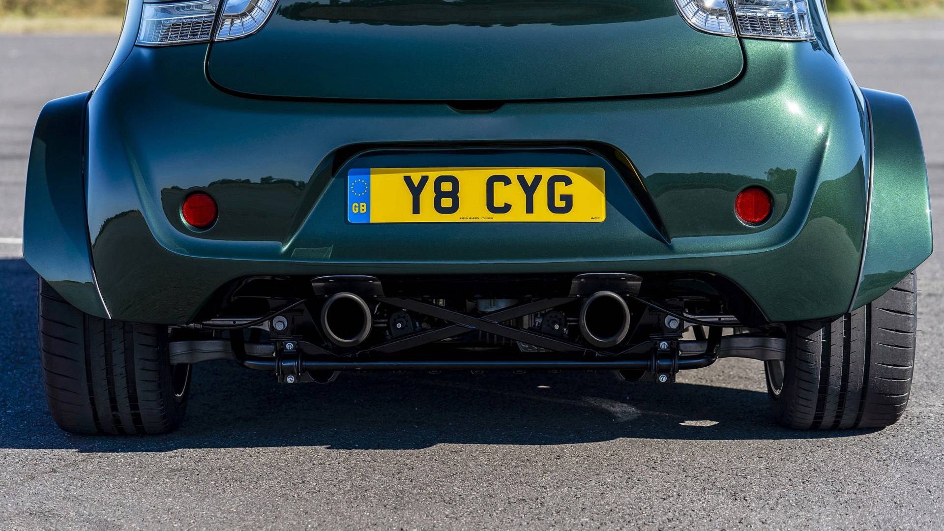 Dieser Aston Martin Cygnet ist hingegen ein klein wenig anders. Anstatt eines 1,3-Liter großen Vierzylinders liefert ein mächtiger Achtzylinder ordentlich Power, die mehr als standesgemäß für diese Fahrzeuggröße ausfällt. 435 PS leistet die 4,7-Liter große Maschine aus dem Vantage S, beschleunigt den Zwerg in unter 4 Sekunden auf 100 km/h und bekommt erst jenseits der 260 Stundenkilometer einen elektronischen Dämpfer verpasst.