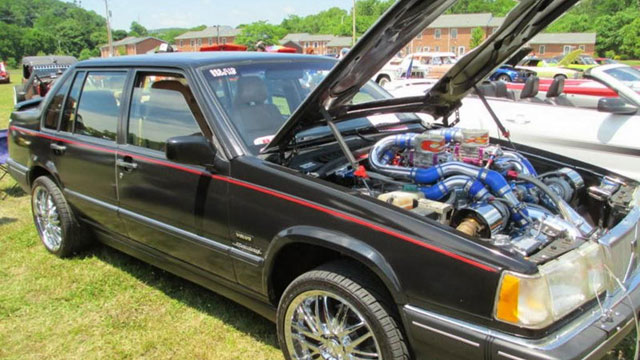 Auf Basis eines 1992 960 schuf der Besitzer ein in jeglicher Hinsicht einzigartiges Monster, das mit Recht den inoffiziellen Titel „stärkster Volvo der Welt“ tragen dürfte. Anstelle des ursprünglich maximal 204 PS starken Sechszylinders wütet unter, und zum Teil auch über der Haube, ein Quad-Turbo-V8 mit 2230 PS und 1354 Nm Drehmoment. Laut Aussage des Besitzers investierte er rund 5000 Dollar in den 565 CID Dart Racing Block und verpasste jedem einzelnen Turbolader ein eigenes Abgassystem. Wie es um die Langlebigkeit des Schweden steht, darf nur vermutet werden (Laufleistung: 294204 km), zumindest für eine Drag-Race-Fahrt sollte es aber schon noch reichen. Die Auktion ist zwar mittlerweile zu Ende, da der festgelegte Mindestpreis jedoch von keinem der 19 Interessenten geboten wurde, steht sowohl der Volvo als auch wahlweise nur der Motor weiterhin zum Verkauf. Das höchste Gebot lag übrigens bei 12.600 Dollar.