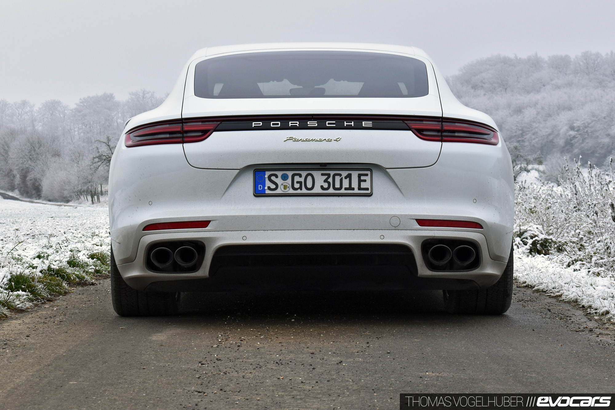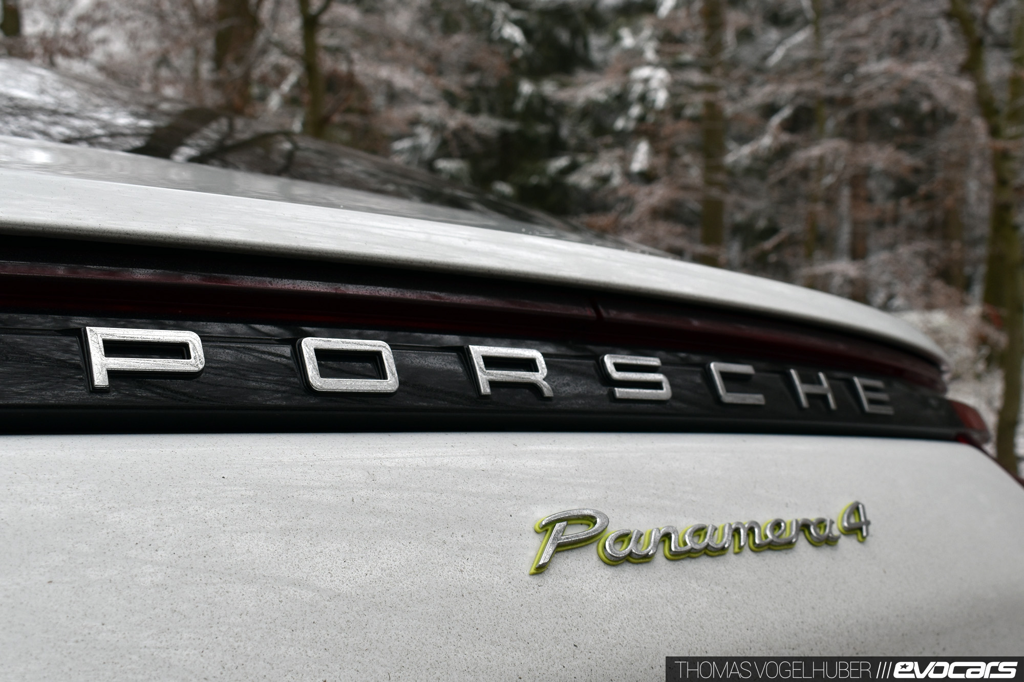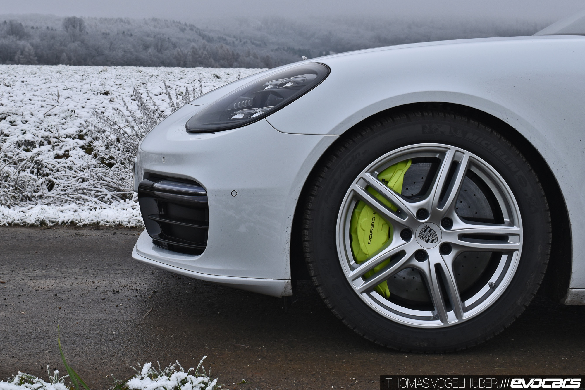 {2}Selbst wer es im Winter versteht wie Walter Röhrl die Kurven quer zu nehmen sollte niemals vergessen, dass er die 2,2 Tonnen Lebendgewicht des Panamera auch irgendwann zum Stehen bringen muss. Auf trockenem Asphalt hilft dabei die optionale Keramikbremse ungemein – auf Schnee und mit aufgezogenen Winterreifen im Format 310/35/20 (!) hat der Hybrid Porsche allerdings einen Bremsweg wie ein vollbeladener Güterzug. Und so dauert unsere Reise zum nächsten Kaffeehaus eben ein paar Minuten länger. Freilich, Kollege Walter hätte schon längst einen Cappuccino geordert, zwei Waffeln verdrückt und wäre zwischendurch noch tanken gewesen. Doch begnügen wir uns lieber mit anderen Vorzügen des Porsche Panamera 4 E-Hybrid.