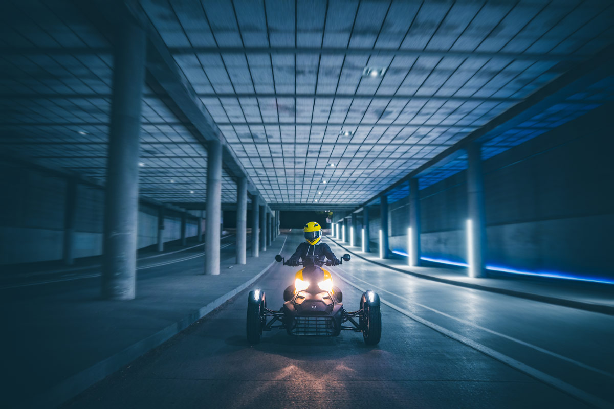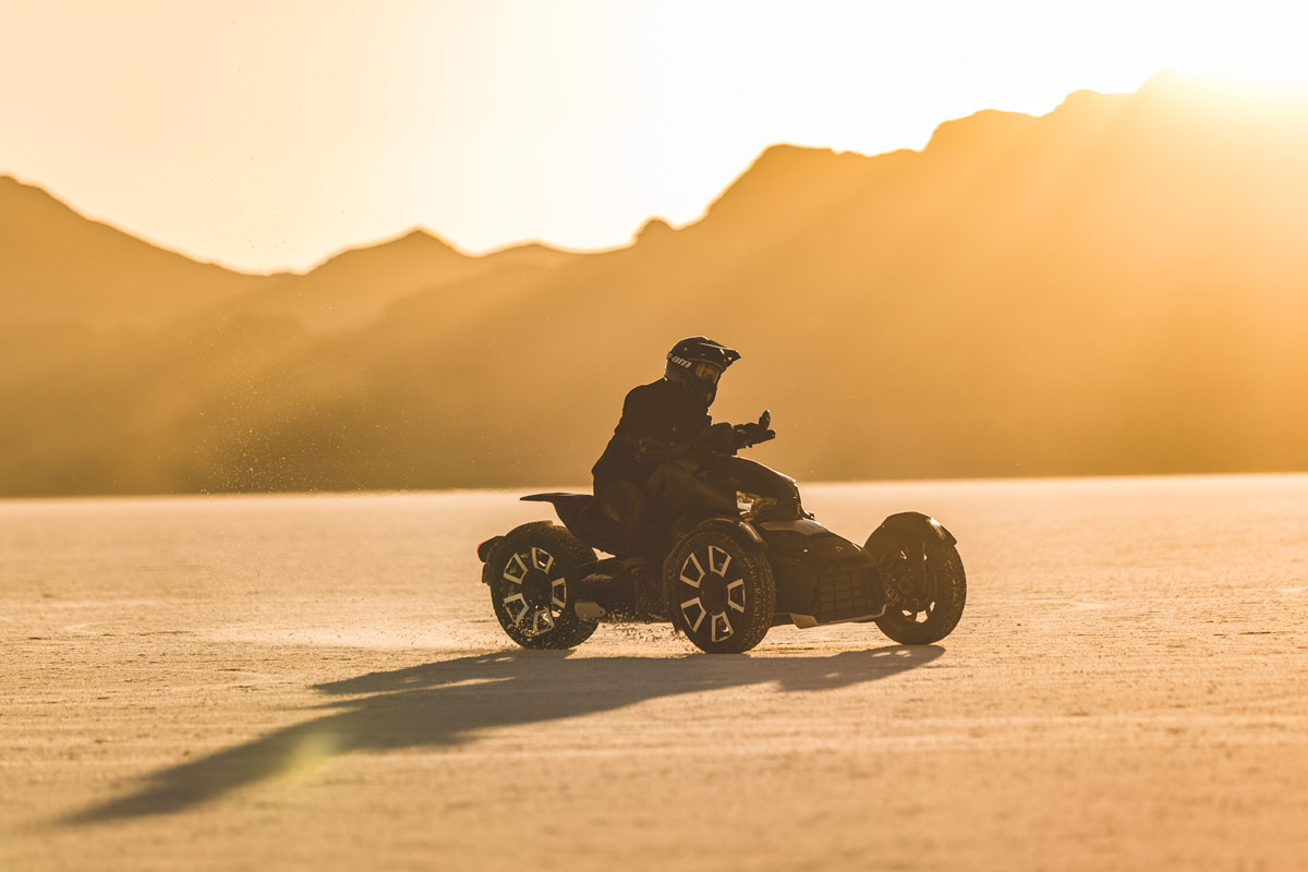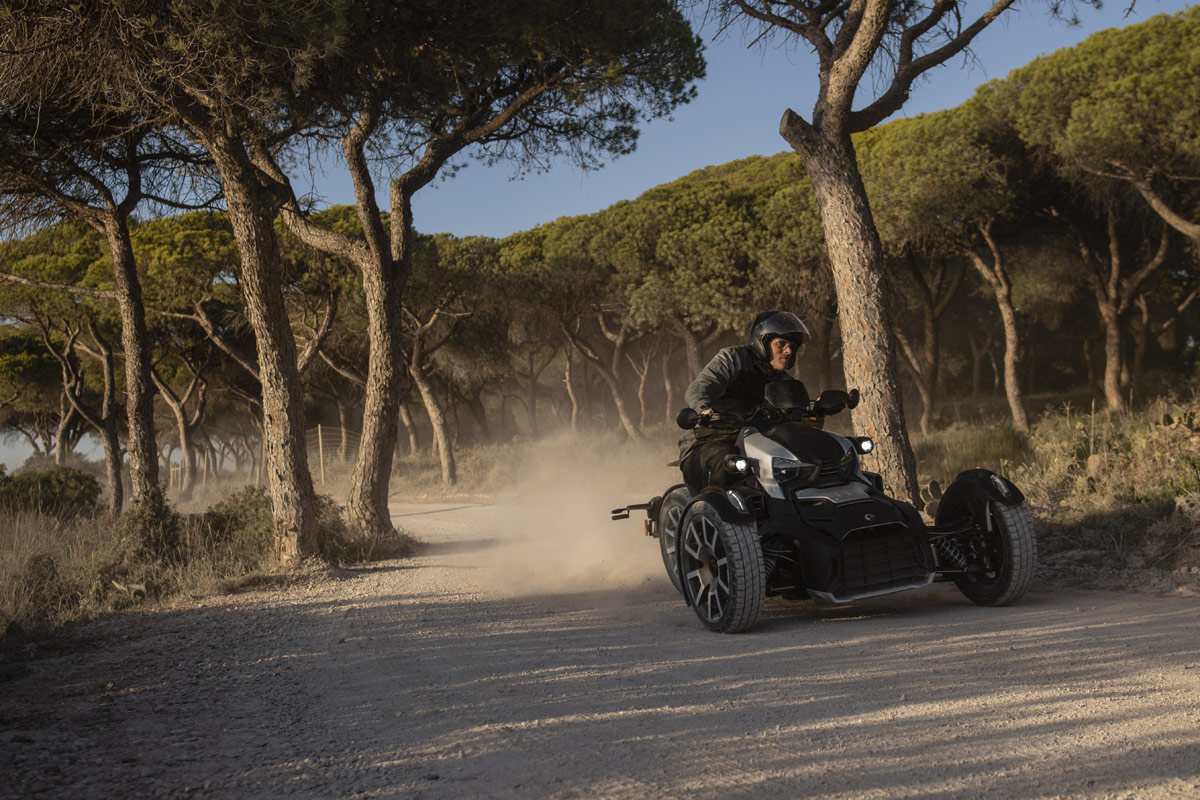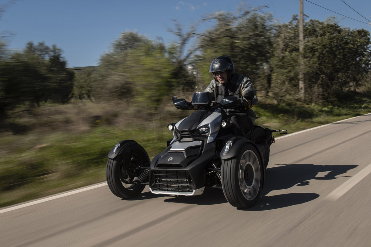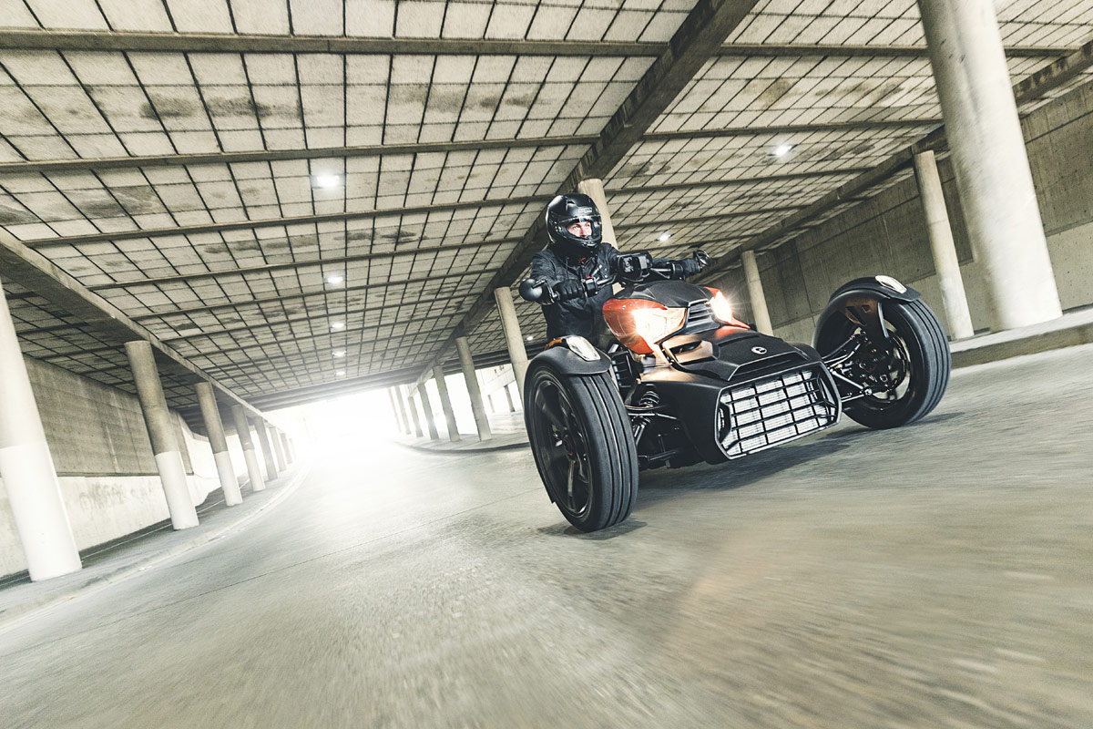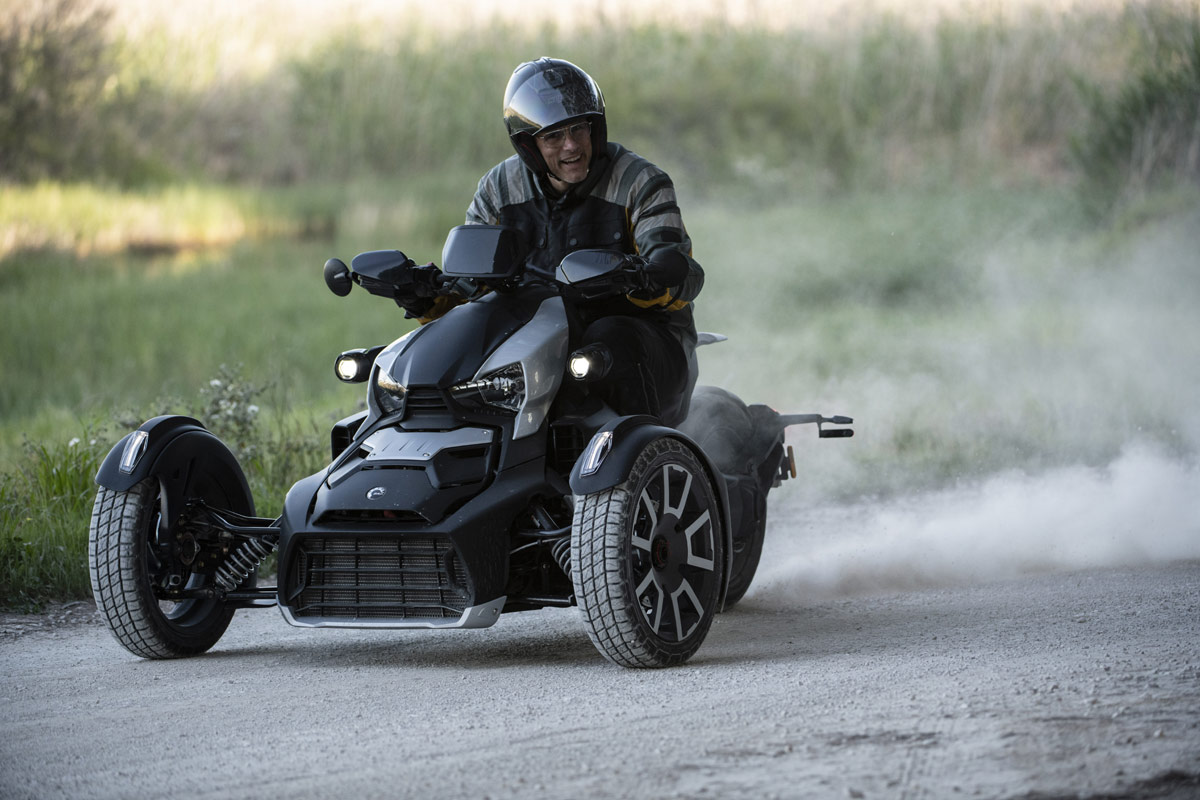 {1}Ok, ich höre schon den Einwand: die Teile hatten zwei Räder hinten und eins vorne, bei dem hier präsentierten Can-Am ist es doch exakt umgekehrt. Stimmt, aber auch der konzeptionelle Urahn, der Morgan Threewheeler galt jetzt nicht gerade als Ausbund der Fahrdynamik, geschweige denn als einfach zu fahren. Und wer ist überhaupt Can-Am? Die Antwort lautet: eine Marke des Kanadischen Unternehmens BRP (Bombardier Recreational Products). Kennen Sie nicht? Oh doch, denn wer lag noch nie am Strand und dachte sich beim Blick aufs Meer, dass er gerne mal so Sea-Doo Jetski fahren würde? Oder im Winterurlaub auf einem Ski-Doo oder Lynx Motorschlitten mal ordentlich Gas geben? Gehört alles zu BRP! Dazu noch Evinrude (Außenbord-Motoren), Rotax-Motoren, die erfolgreich in etlichen Motorrädern ihren Dienst verrichten, und noch vieles mehr, was vor allen Dingen eins machen soll: motorisierten Spaß in jedem Terrain.
