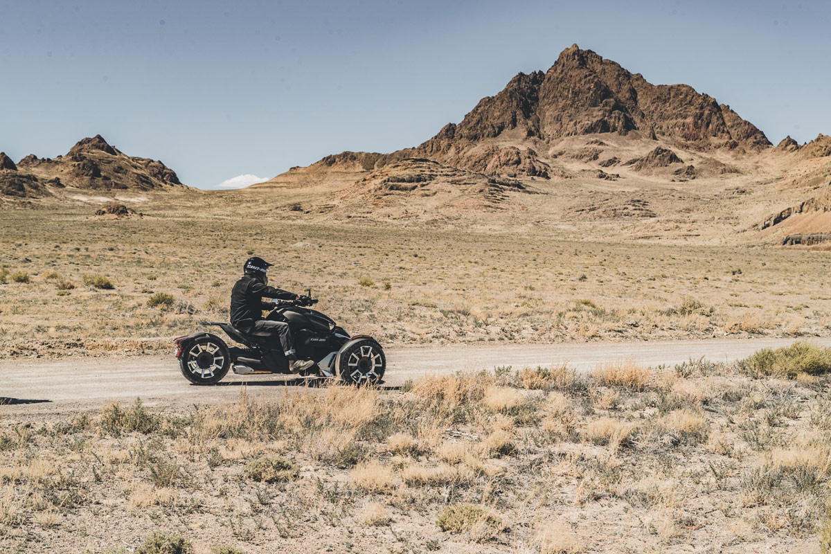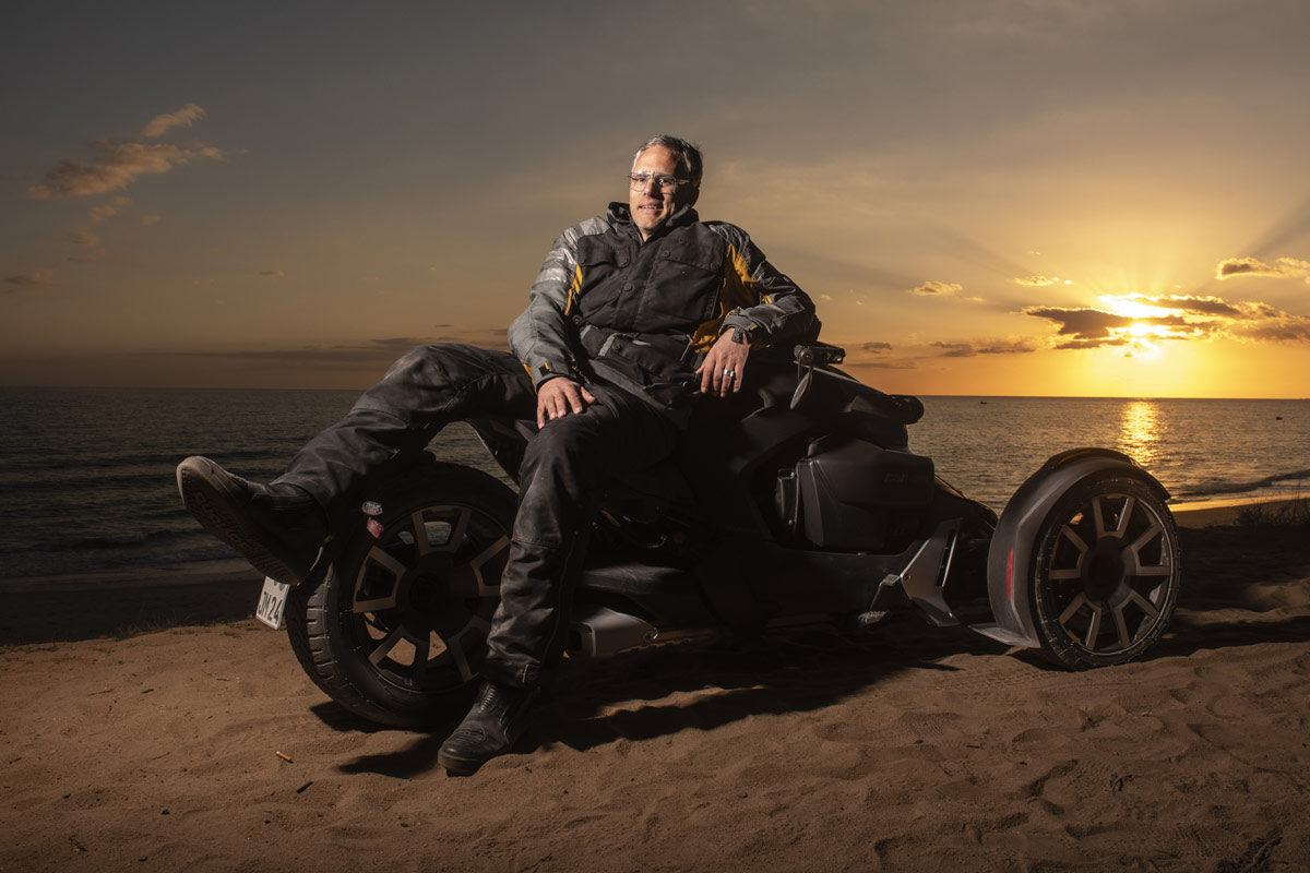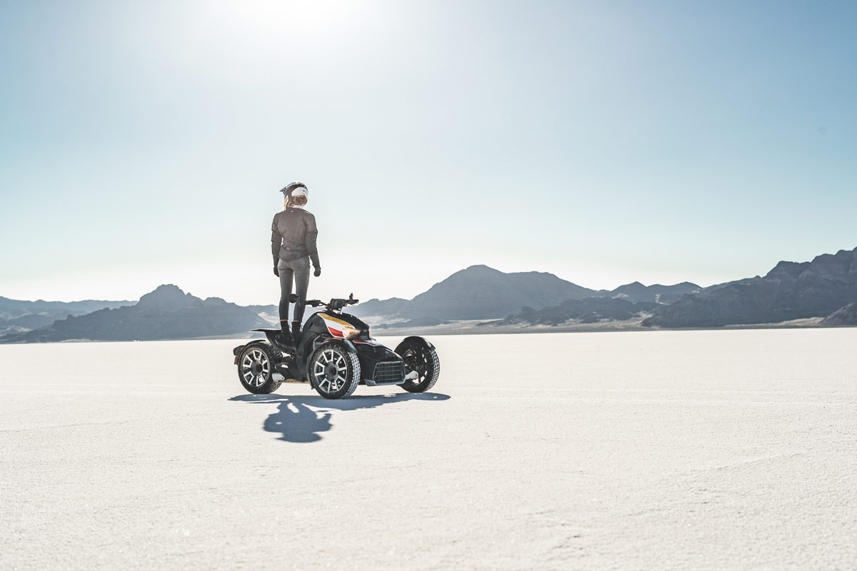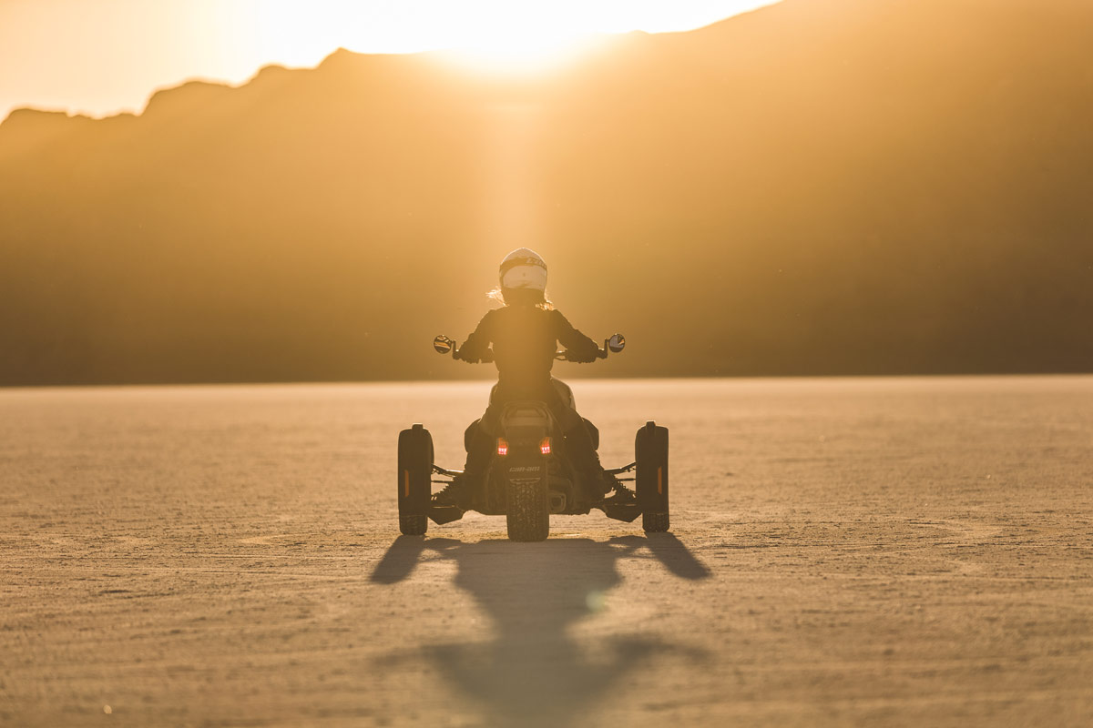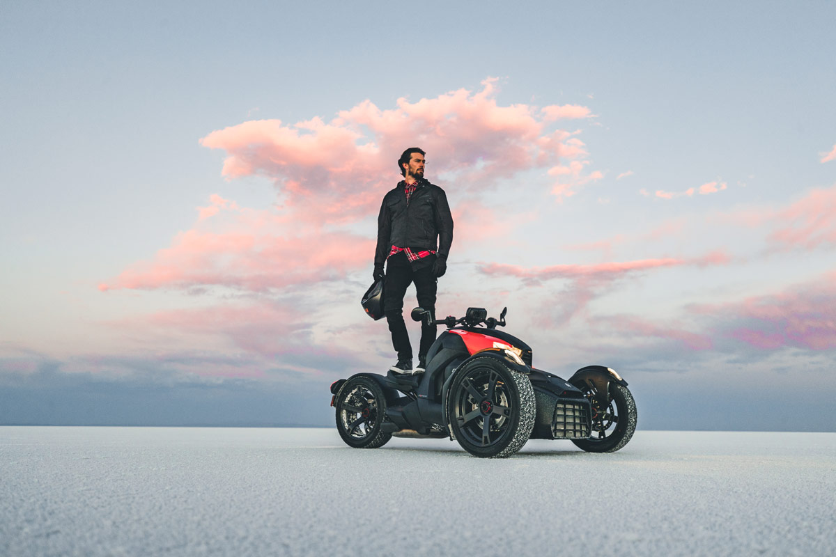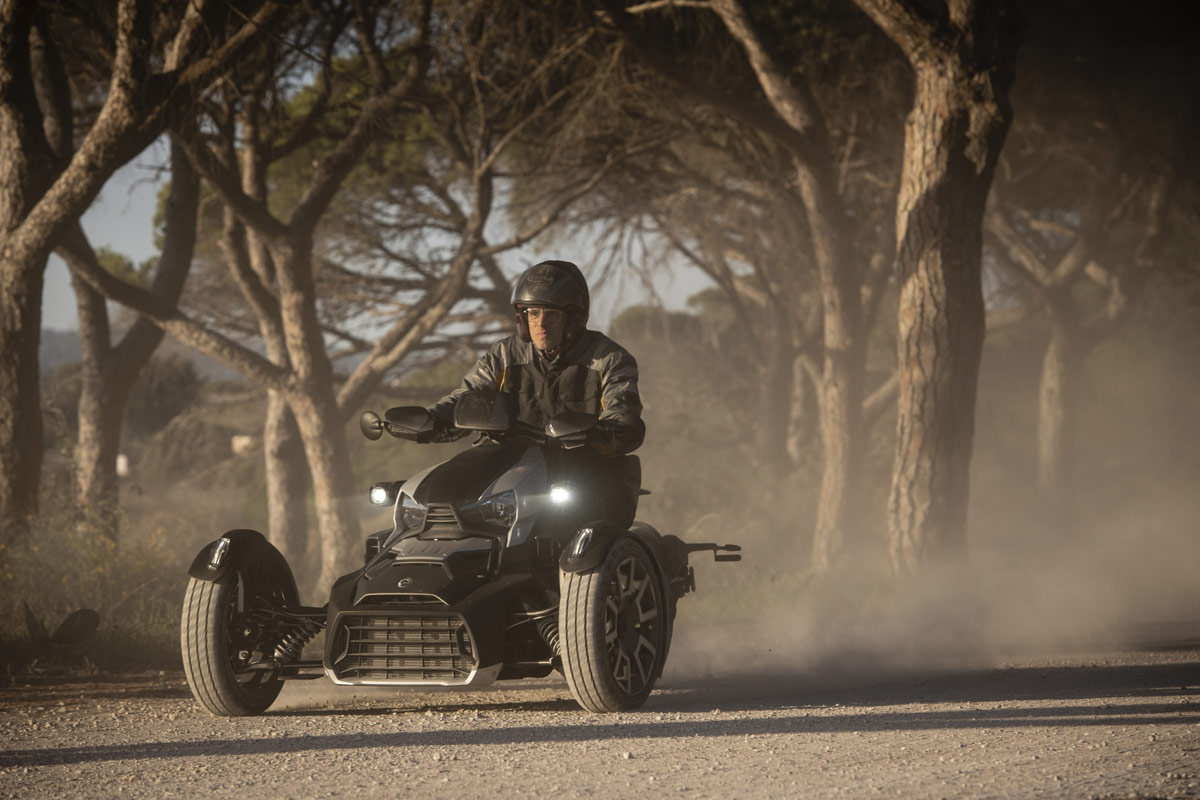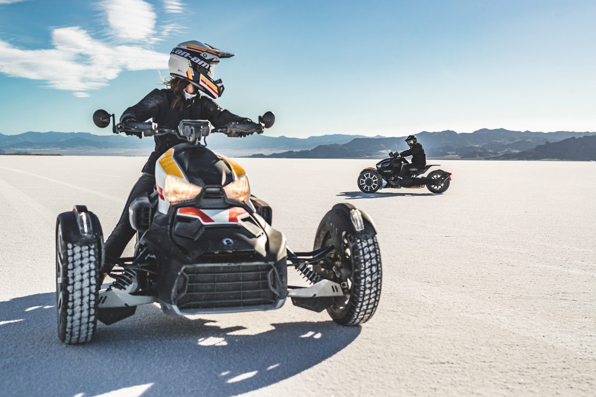{1}Ok, ich höre schon den Einwand: die Teile hatten zwei Räder hinten und eins vorne, bei dem hier präsentierten Can-Am ist es doch exakt umgekehrt. Stimmt, aber auch der konzeptionelle Urahn, der Morgan Threewheeler galt jetzt nicht gerade als Ausbund der Fahrdynamik, geschweige denn als einfach zu fahren. Und wer ist überhaupt Can-Am? Die Antwort lautet: eine Marke des Kanadischen Unternehmens BRP (Bombardier Recreational Products). Kennen Sie nicht? Oh doch, denn wer lag noch nie am Strand und dachte sich beim Blick aufs Meer, dass er gerne mal so Sea-Doo Jetski fahren würde? Oder im Winterurlaub auf einem Ski-Doo oder Lynx Motorschlitten mal ordentlich Gas geben? Gehört alles zu BRP! Dazu noch Evinrude (Außenbord-Motoren), Rotax-Motoren, die erfolgreich in etlichen Motorrädern ihren Dienst verrichten, und noch vieles mehr, was vor allen Dingen eins machen soll: motorisierten Spaß in jedem Terrain.