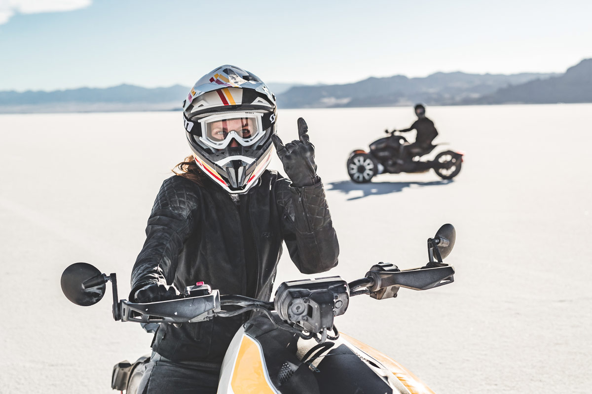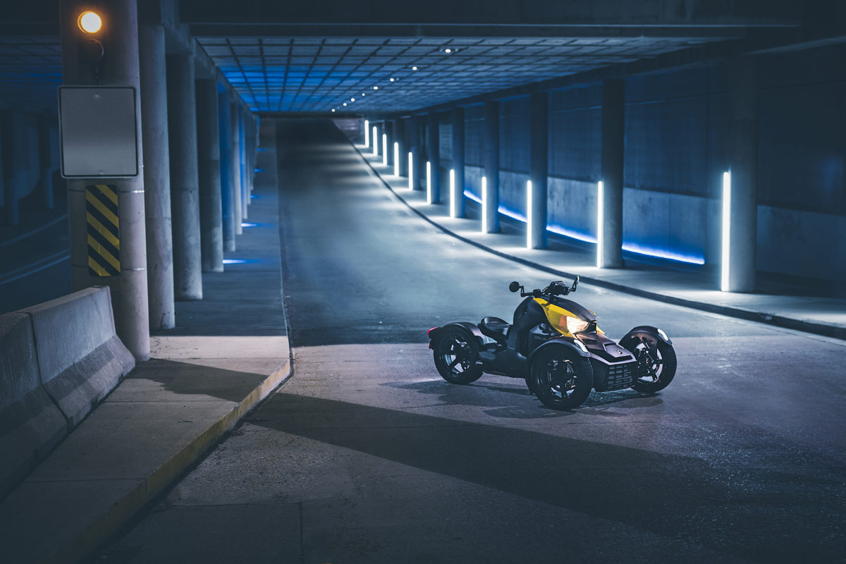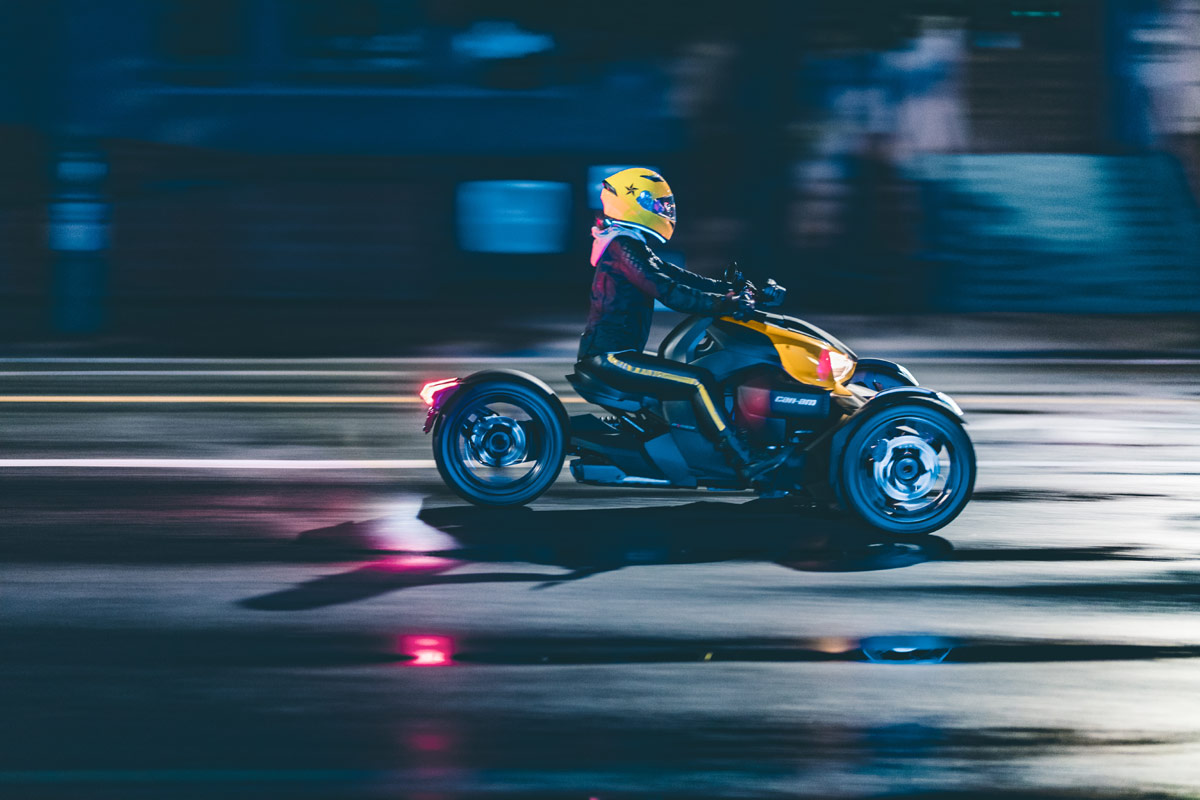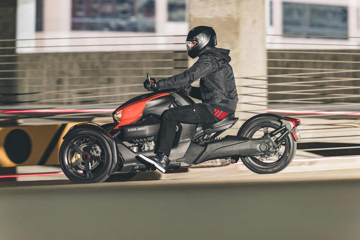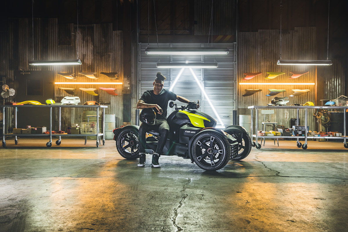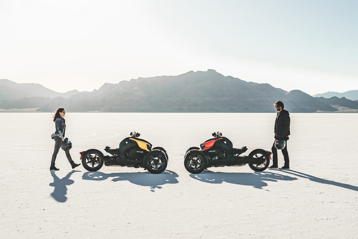 {1}Ok, ich höre schon den Einwand: die Teile hatten zwei Räder hinten und eins vorne, bei dem hier präsentierten Can-Am ist es doch exakt umgekehrt. Stimmt, aber auch der konzeptionelle Urahn, der Morgan Threewheeler galt jetzt nicht gerade als Ausbund der Fahrdynamik, geschweige denn als einfach zu fahren. Und wer ist überhaupt Can-Am? Die Antwort lautet: eine Marke des Kanadischen Unternehmens BRP (Bombardier Recreational Products). Kennen Sie nicht? Oh doch, denn wer lag noch nie am Strand und dachte sich beim Blick aufs Meer, dass er gerne mal so Sea-Doo Jetski fahren würde? Oder im Winterurlaub auf einem Ski-Doo oder Lynx Motorschlitten mal ordentlich Gas geben? Gehört alles zu BRP! Dazu noch Evinrude (Außenbord-Motoren), Rotax-Motoren, die erfolgreich in etlichen Motorrädern ihren Dienst verrichten, und noch vieles mehr, was vor allen Dingen eins machen soll: motorisierten Spaß in jedem Terrain.