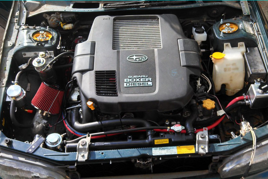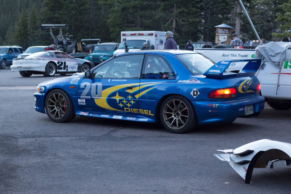 {1}Anstelle des ursprünglichen 1,8-Liter-Benziners werkelt nun ein EE220 Diesel-Boxer mit 200 PS und 300 Nm unter der Haube. Gesteuert wird das Ganze über eine Bosch MS 15.1 ECU, Bremsen, Fahrwerk und Reifen stammen zudem von einem 2008 WRX STi. Seine Fahrtauglichkeit hat der Diesel Impreza unter anderem bereits beim Pikes Peak unter Beweis gestellt, weitere Rennen sollen noch dieses Jahr folgen. Wer sich weiter für das Projekt interessiert, der kann mit der Firma Boxeer in Kontakt treten. Sie zeigen sich für den Umbau verantwortlich und bieten den Motorentausch für umgerechnet 5.200 Euro an.