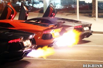 Drei Lamborghinis beim Flammenwerfer-Duell