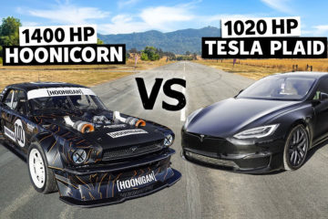 Tesla Model S Plaid (1.020 PS) vs. Ken Block’s AWD Mustang (1.400 PS)